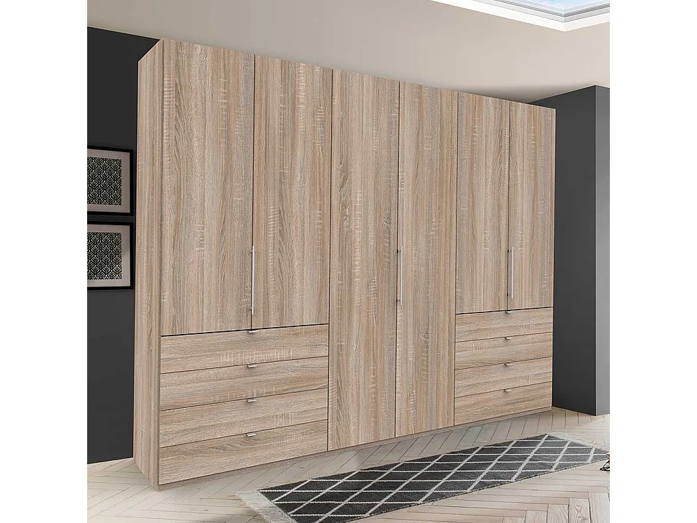 Kombi Schlafzimmerkleiderschrank mit Falttüren und Schubladen Eiche Sägerau