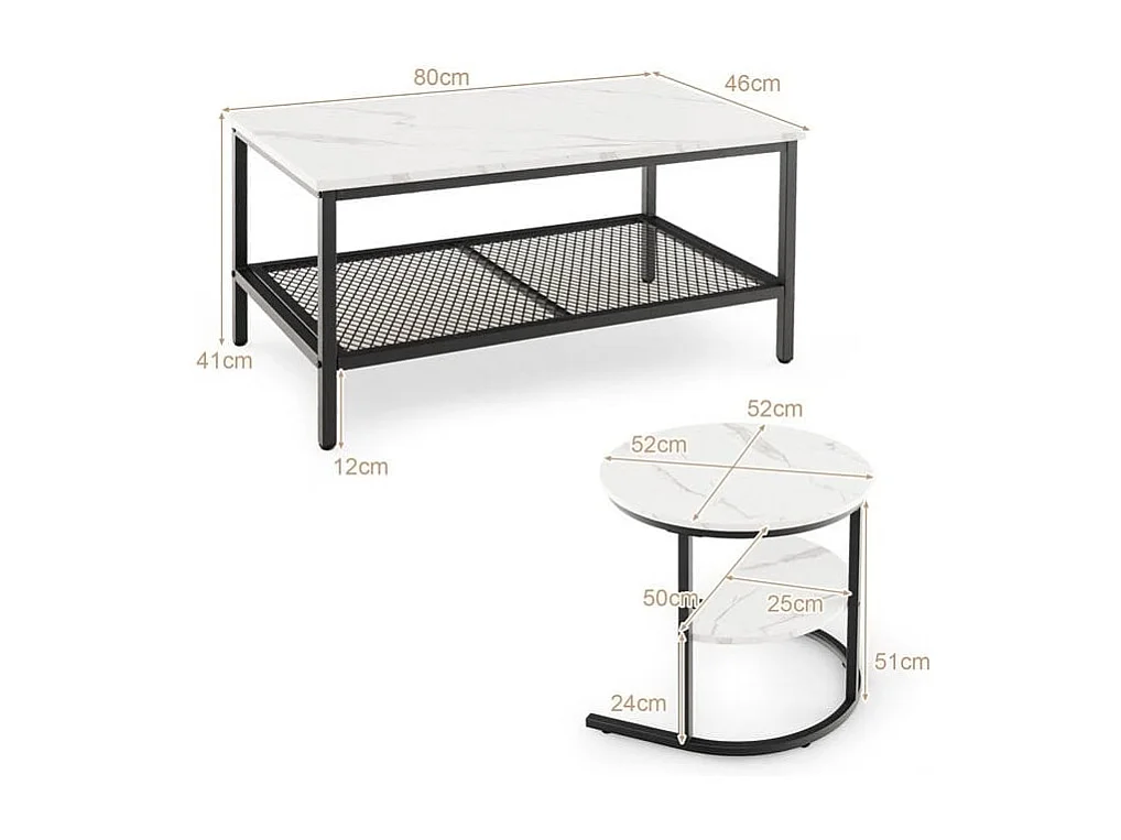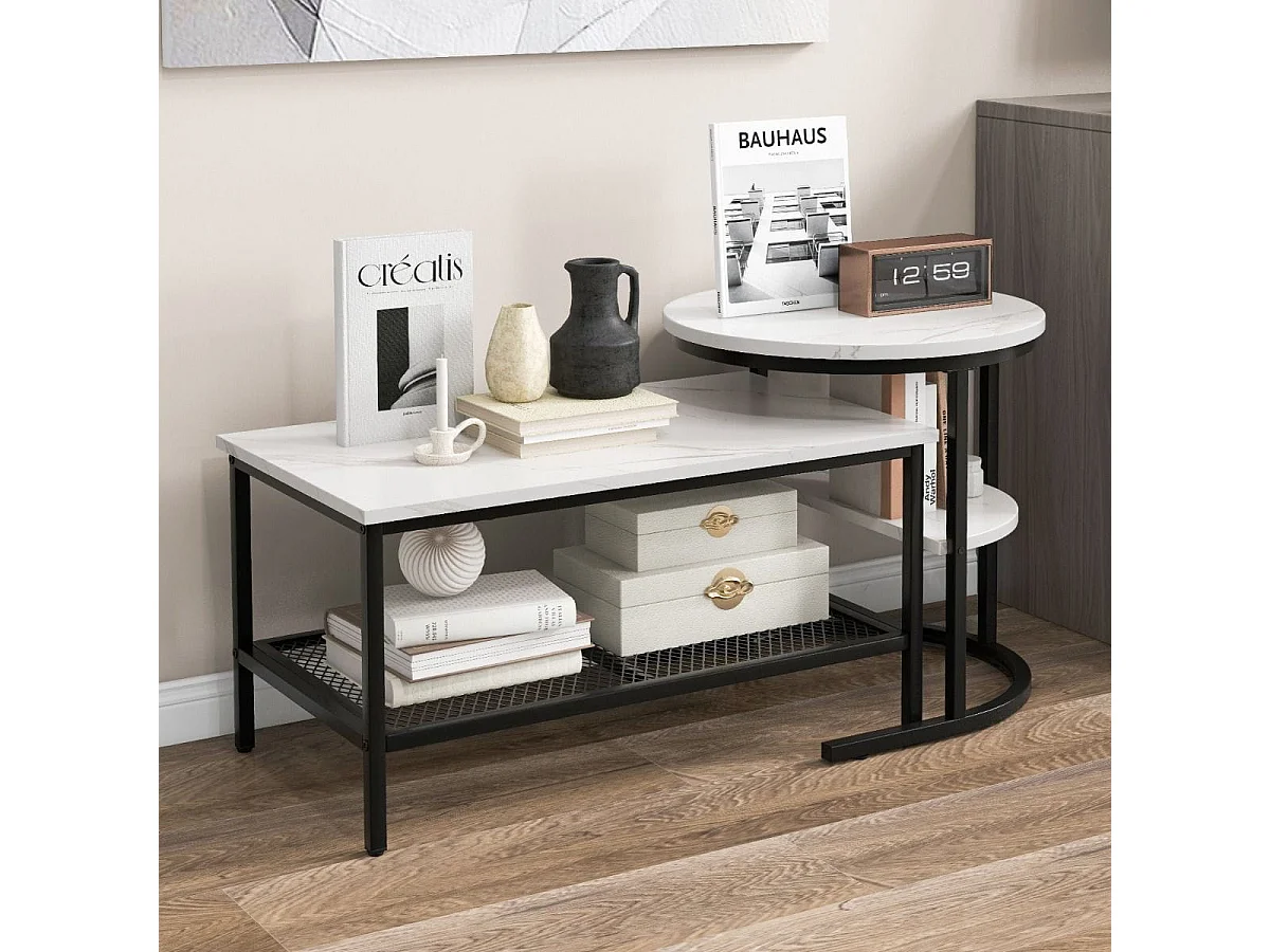 Kombinierbare Couchtische 2-teiliges Kaffeetisch-Set mit Kunstmarmorplatte Weiß und Schwarz