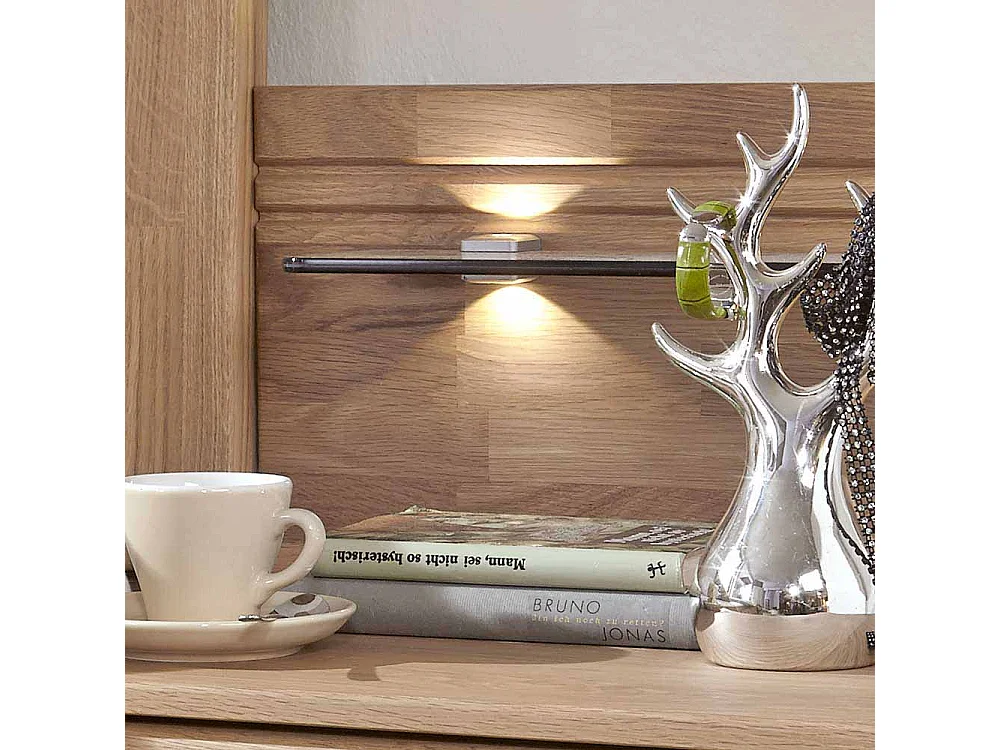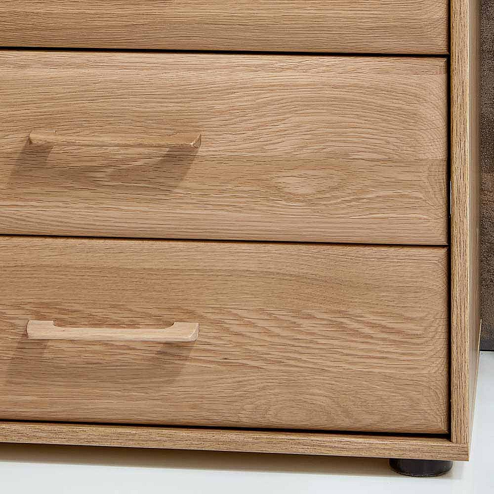 Komfortbett aus Eiche Polsterkopfteil in Creme Weiß (dreiteilig)