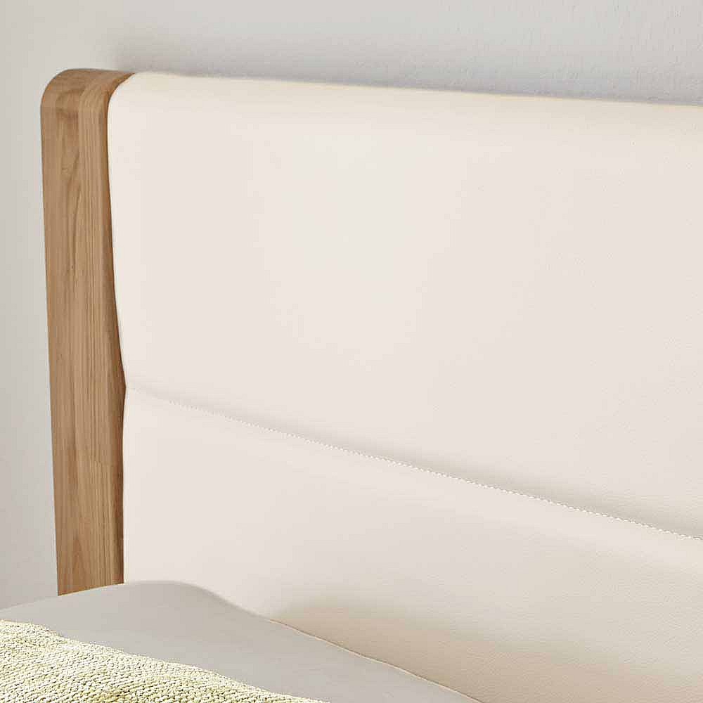 Komfortbett aus Eiche Polsterkopfteil in Creme Wei� (dreiteilig)