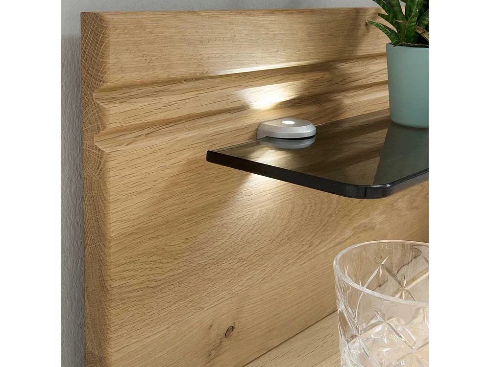 Komfortbett aus Eiche teilmassiv Nachtkonsole und LED Beleuchtung (zweiteilig)