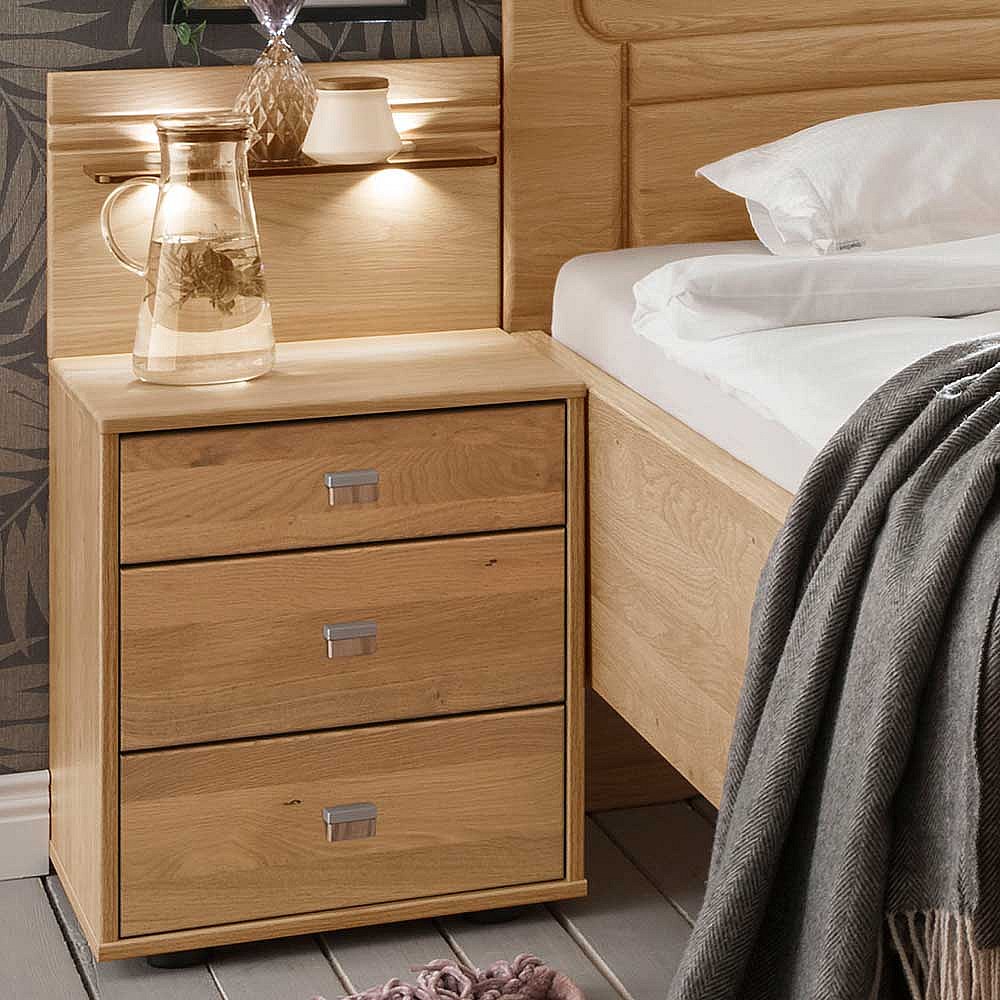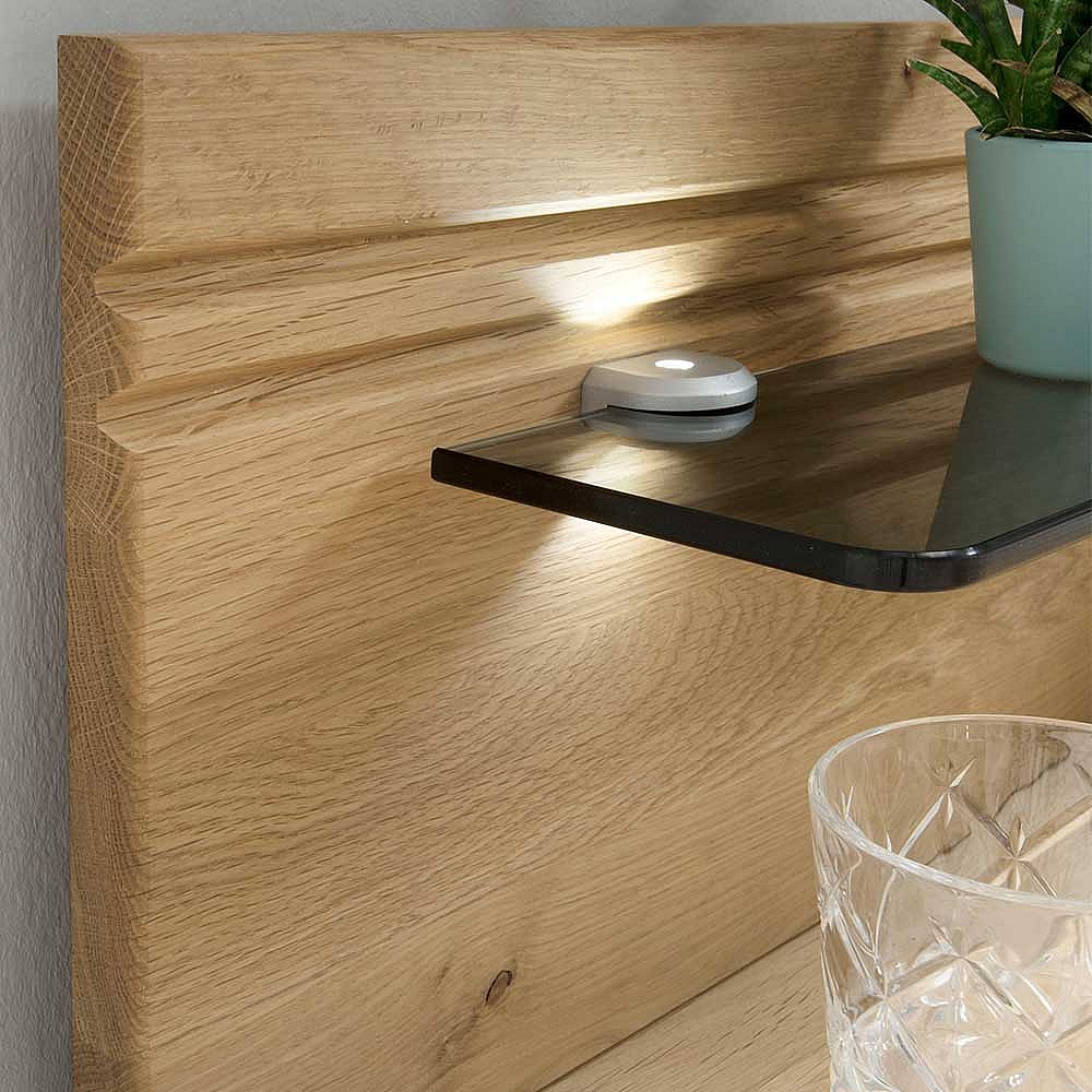 Komfortbett aus Eiche teilmassiv Nachtkonsole und LED Beleuchtung (zweiteilig)