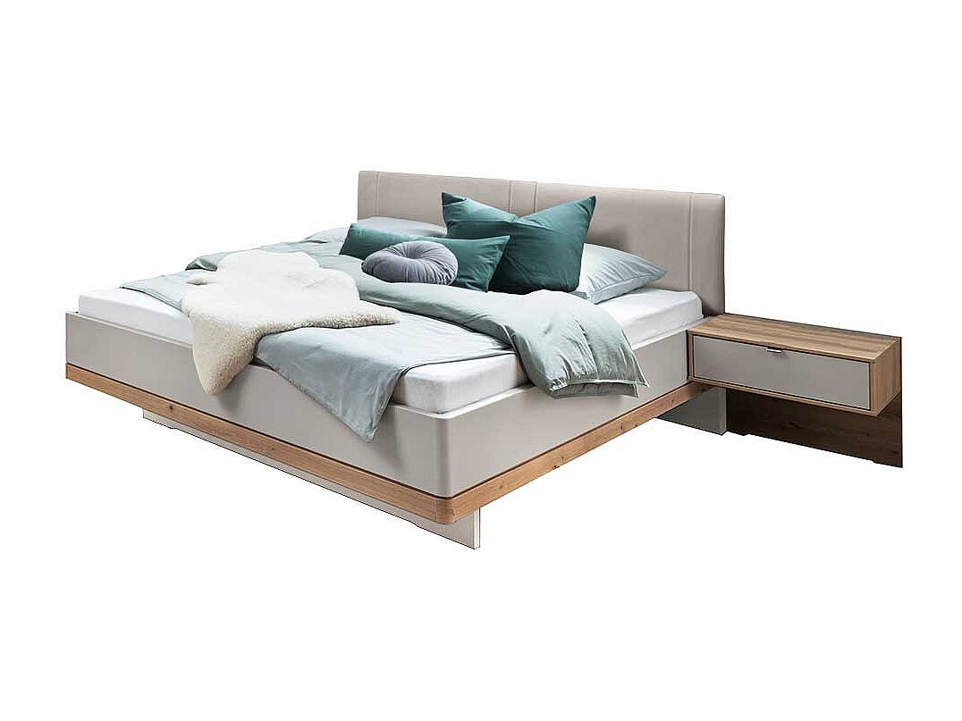Komfortbett in Beige und Eiche Bianco Made in Germany (dreiteilig)