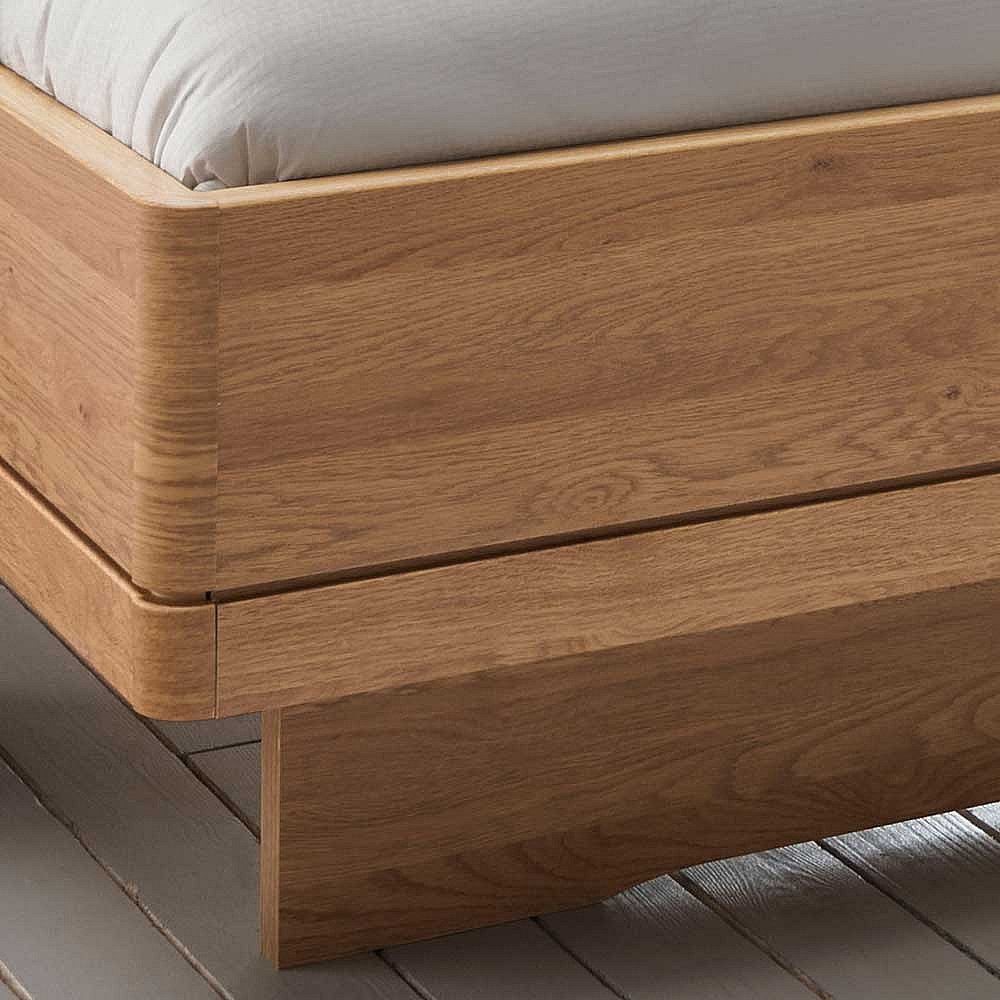Komfortbett in Beige und Eiche teilmassiv Made in Germany