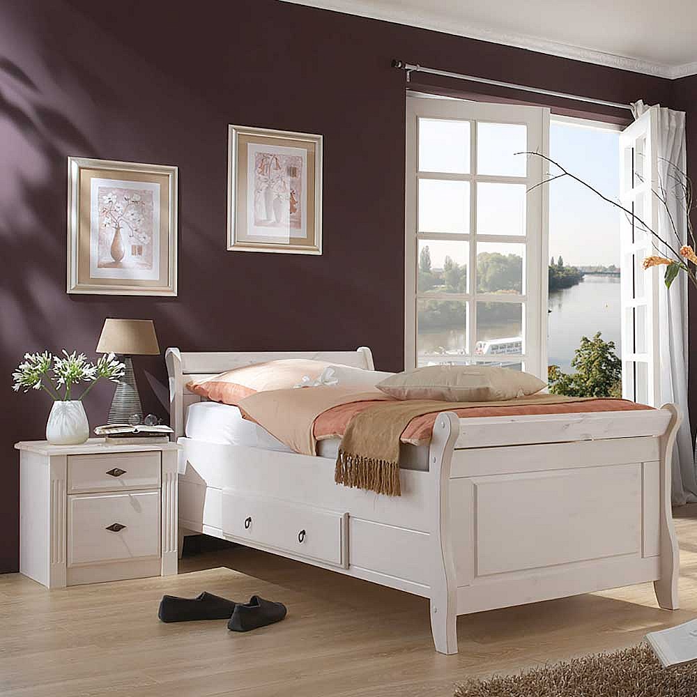 Komfortbett in Weiß Kiefer teilmassiv Nachtkommode (zweiteilig)