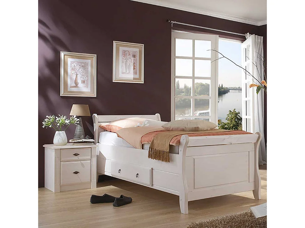 Komfortbett in Weiß Kiefer teilmassiv Nachtkommode (zweiteilig)