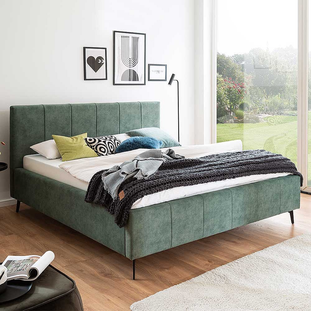 Komfortbett Stoff Grün aus Velours Vierfußgestell aus Metall
