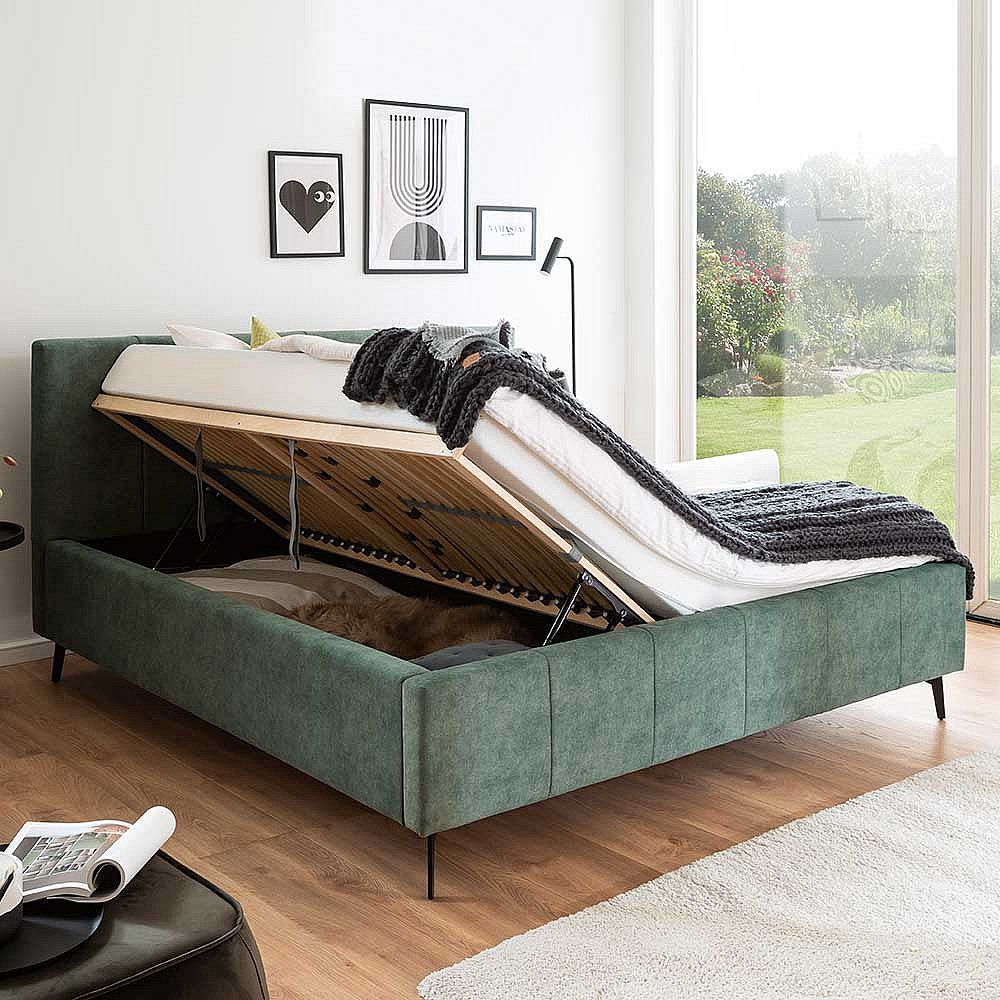 Komfortbett Stoff Grün aus Velours Vierfußgestell aus Metall