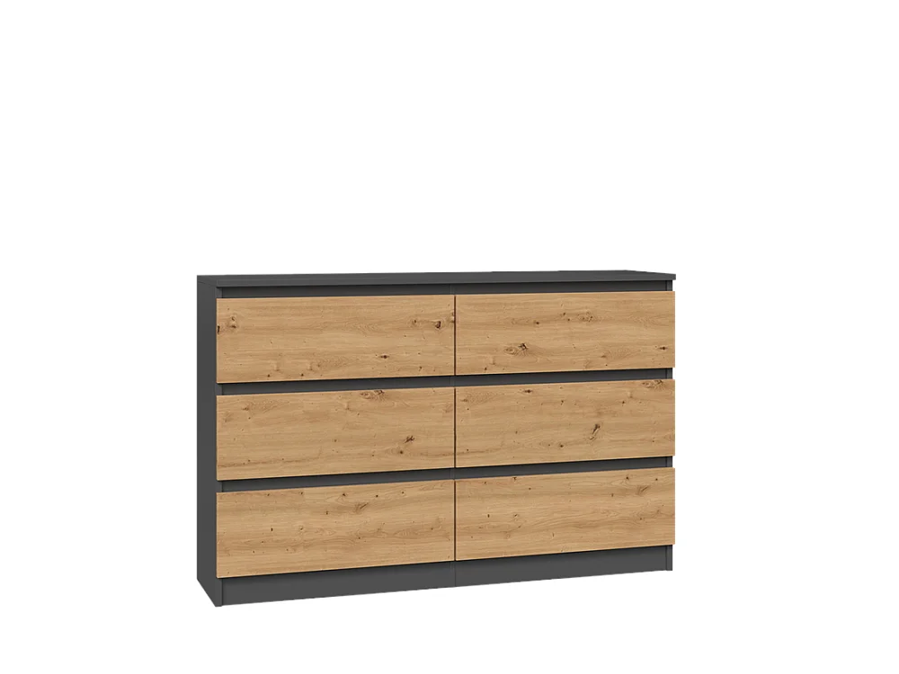 Kommode: 6 Schubladen, Anthrazit/Artisan, 30 x 75 x 120 cm