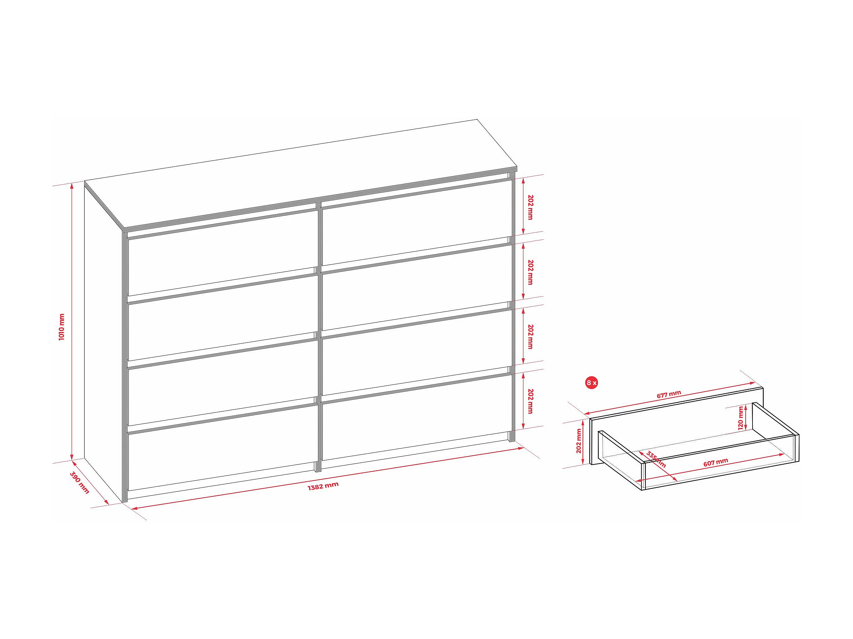 Kommode: 8 Schubladen, Karamell, 139 x 102 x 39 cm