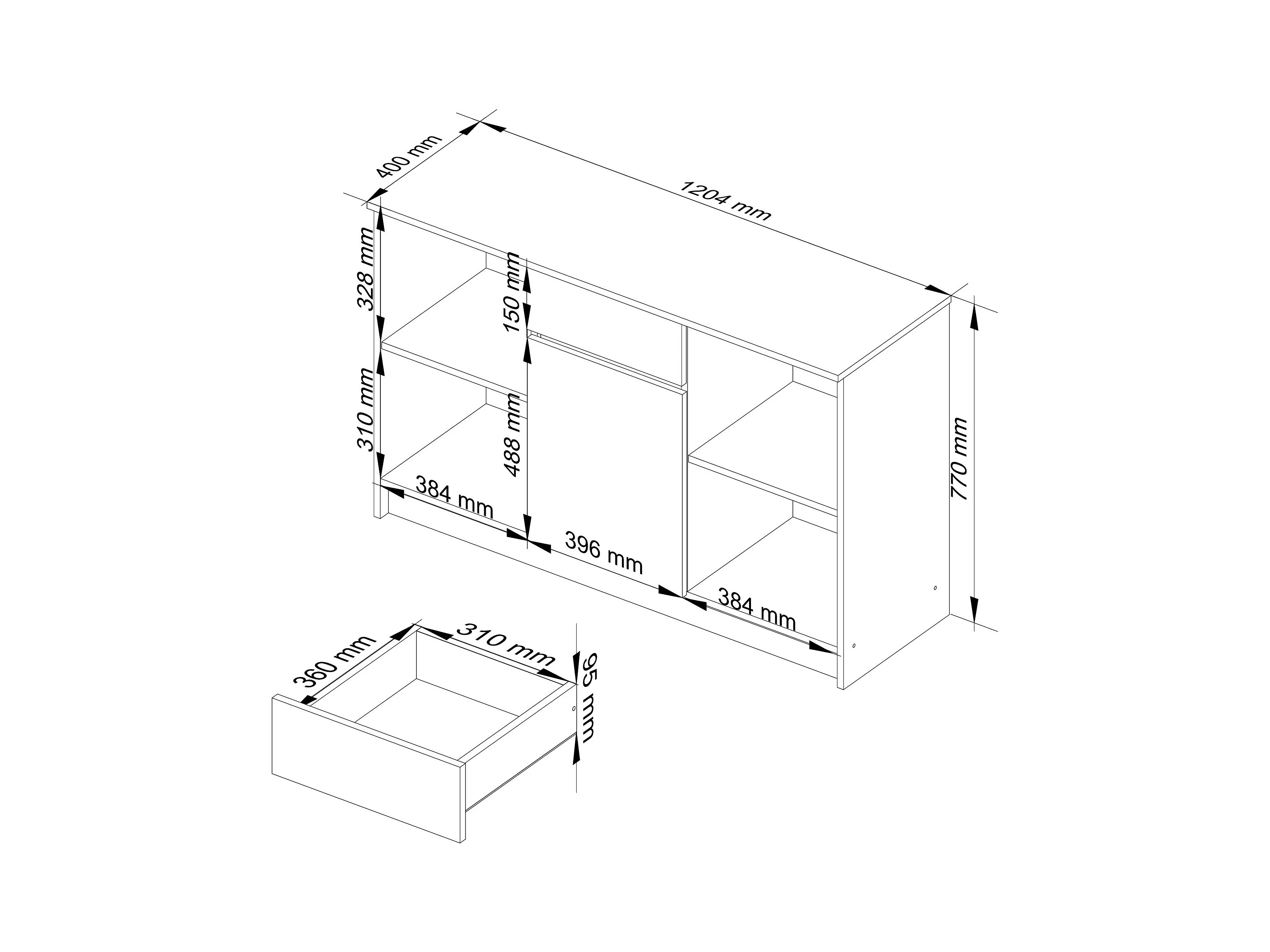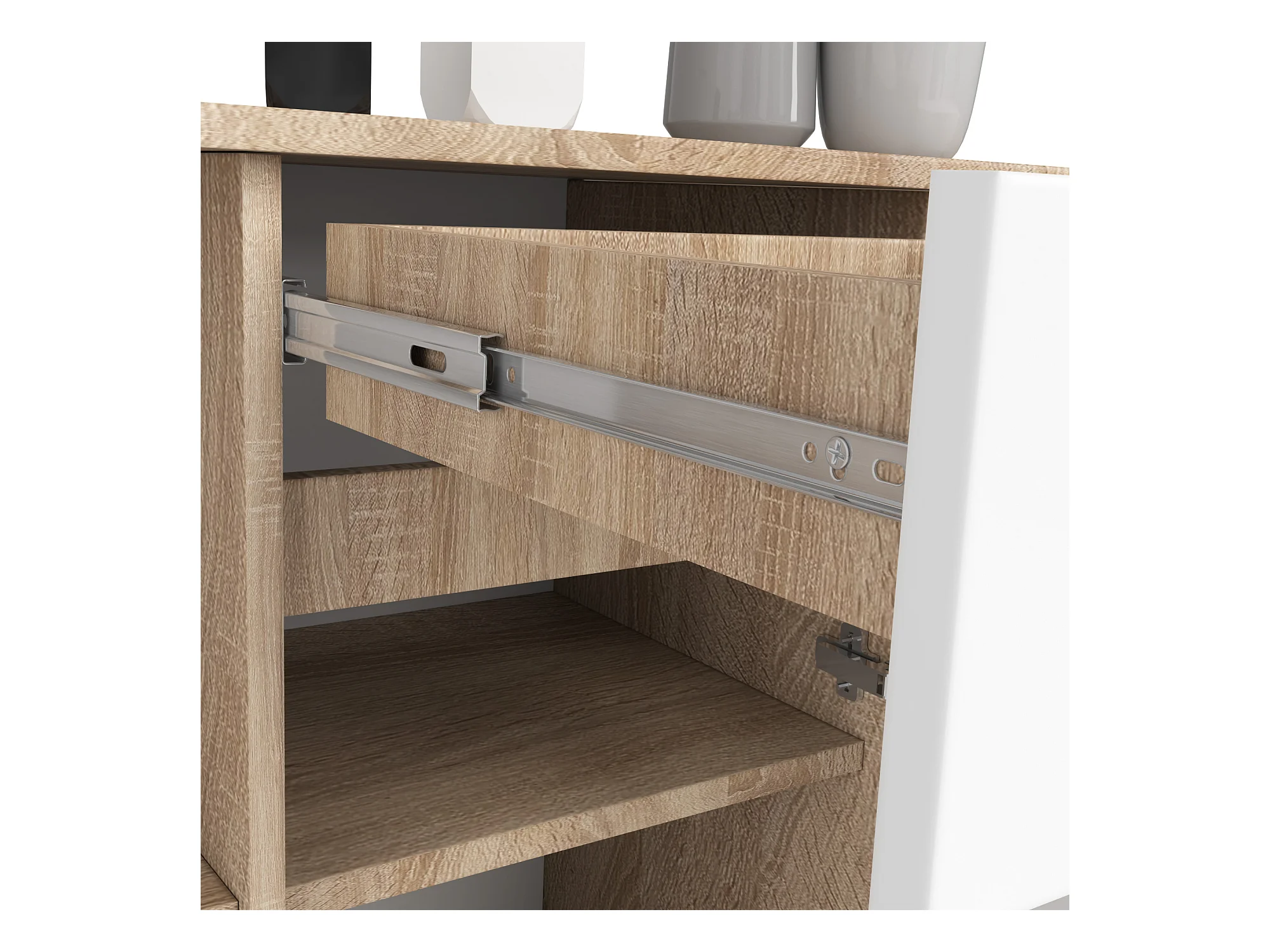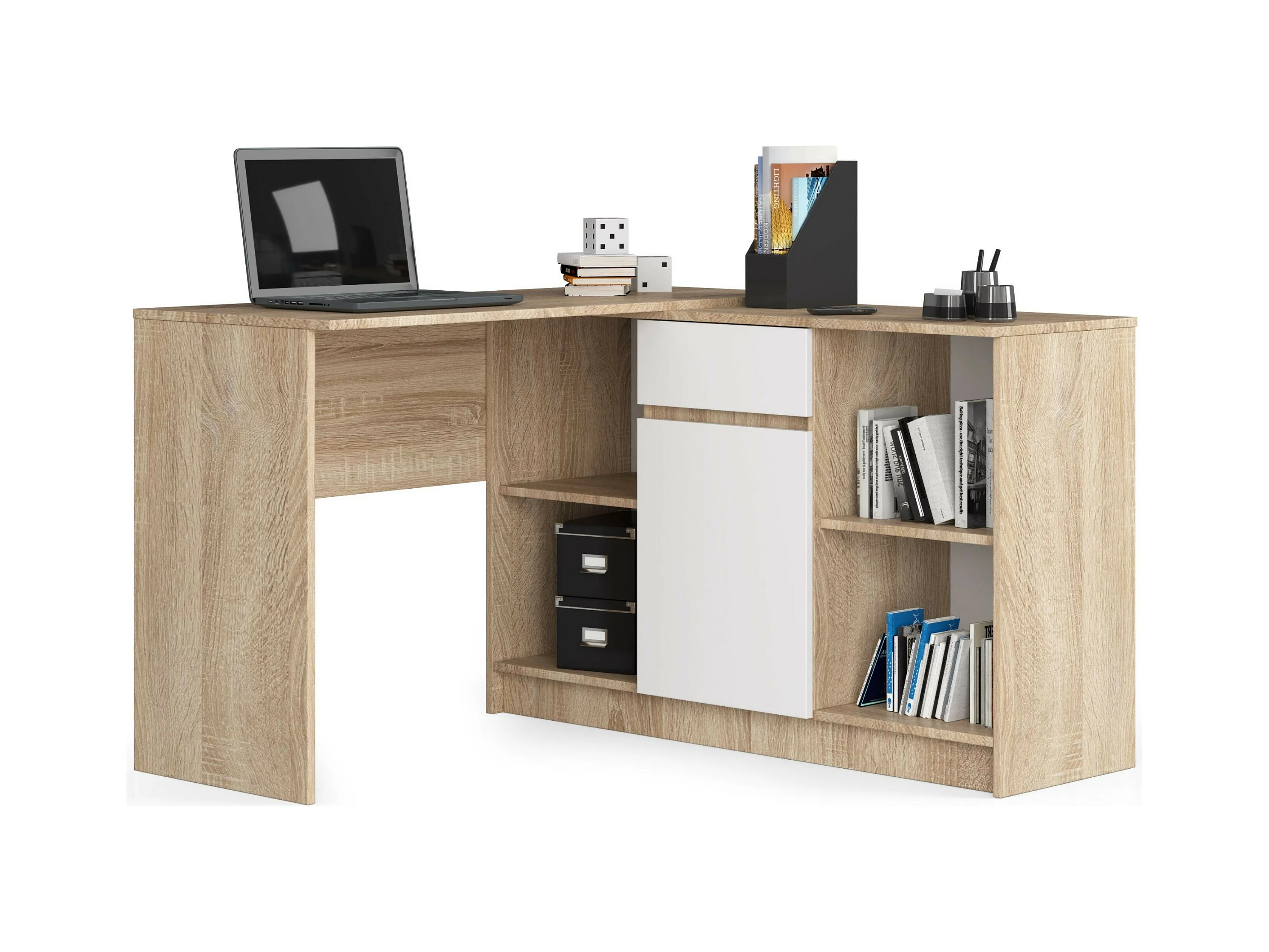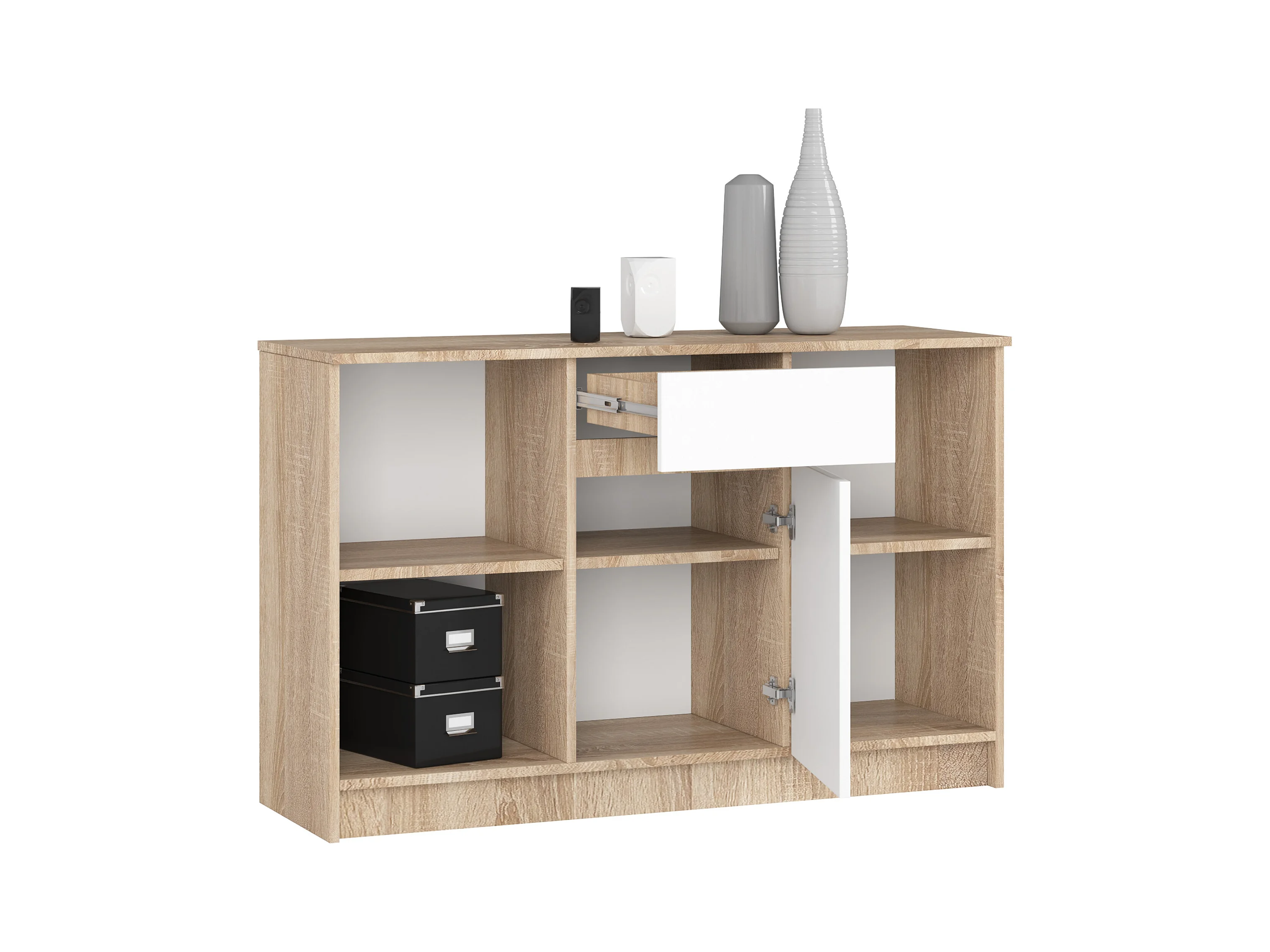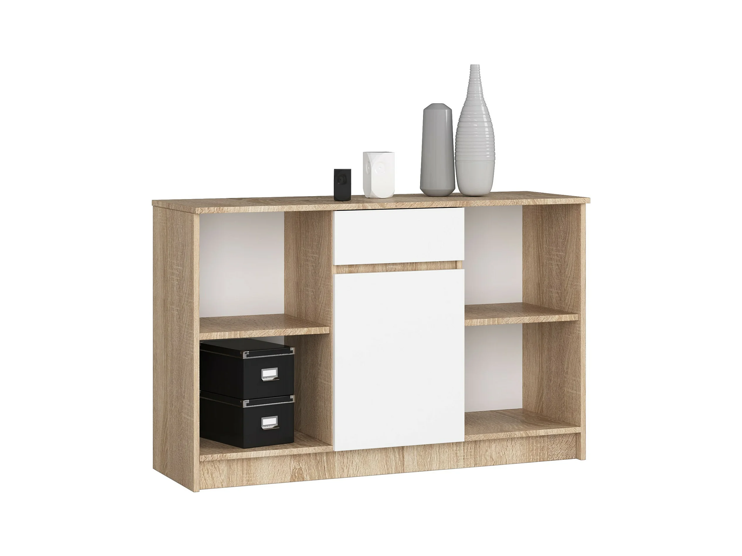 Kommode AKORD B17 Sonoma-Eiche 120 cm Tür Schublade 6 Ebenen Front Weiß B120 x H77 x T40 cm