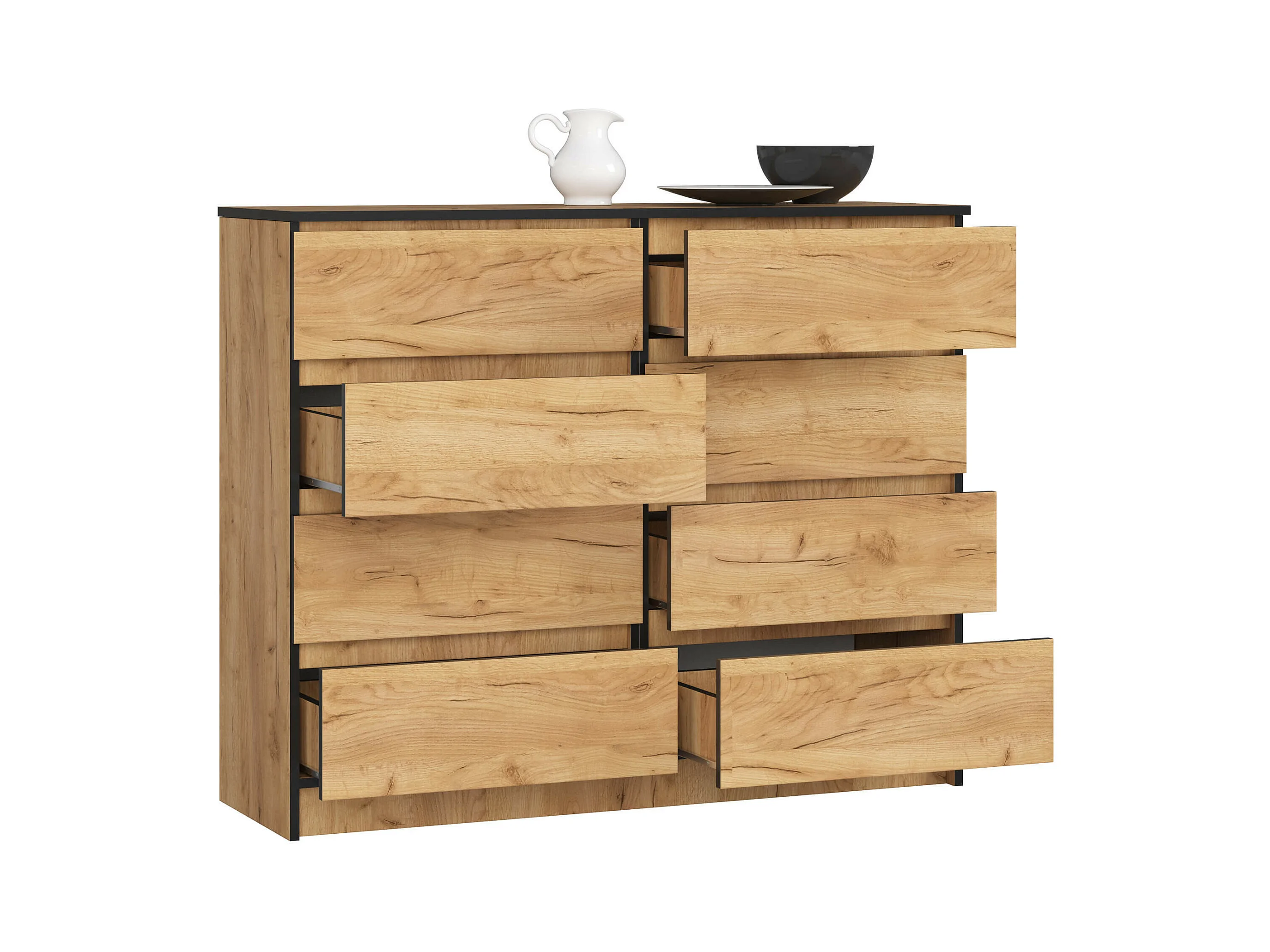 Kommode AKORD K120 Eiche Craft 120 cm 8 Schubladen B120 x H99 x T40 cm