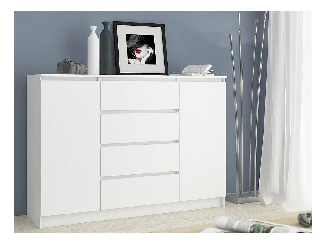 Kommode AKORD K140 Weiß 138 cm 2 Türen 4 Schubladen 4 Ebenen B138 x H99 x T40 cm