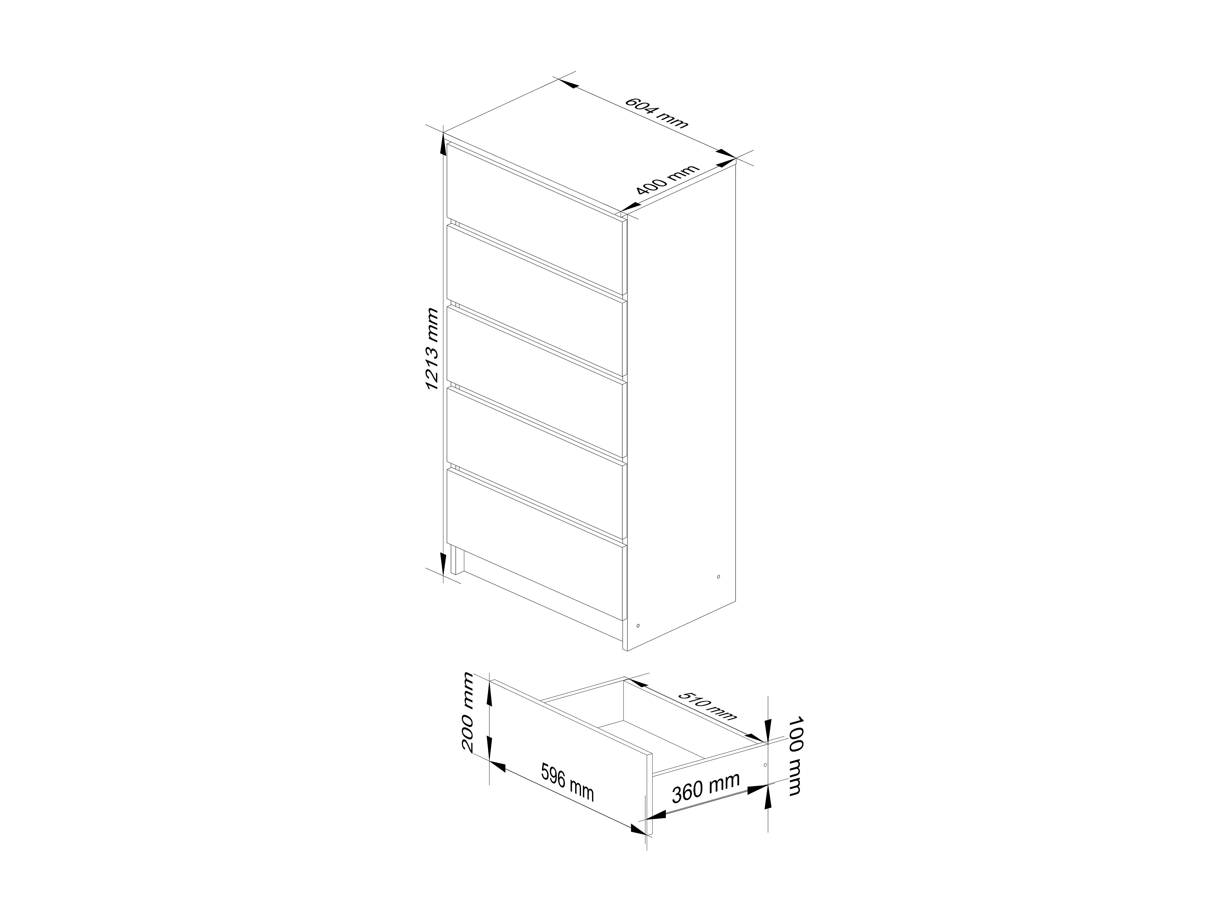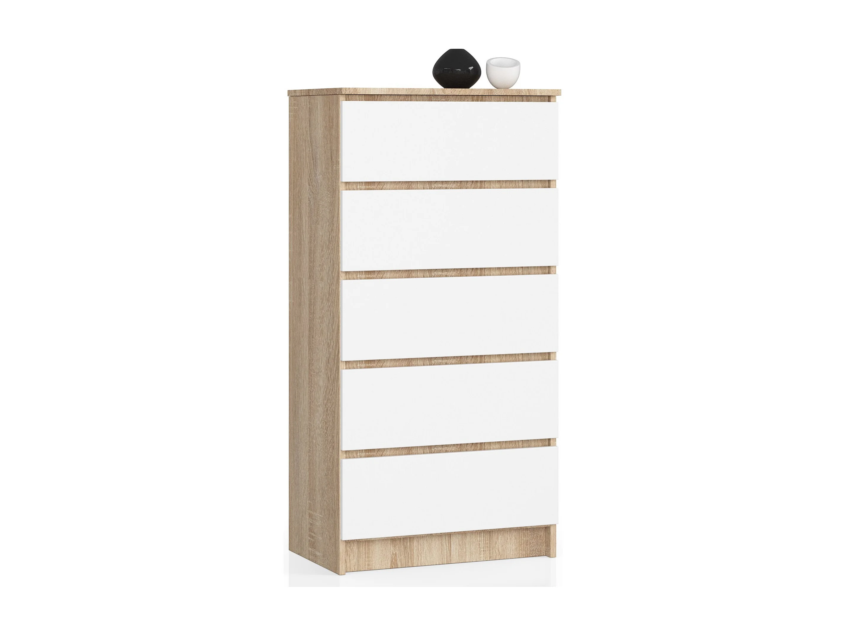 Kommode AKORD K60 Sonoma-Eiche 60 cm 5 Schubladen Front Weiß B60 x H121 x T40 cm