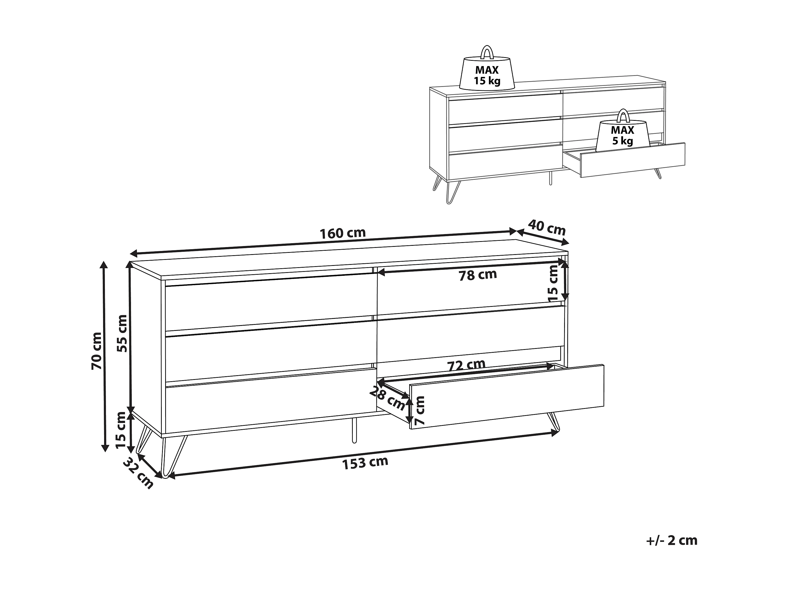 Kommode Aufbewahrungsschrank Sideboard 6 Schubladen minimalistischer Stil hellbraun Cardigan