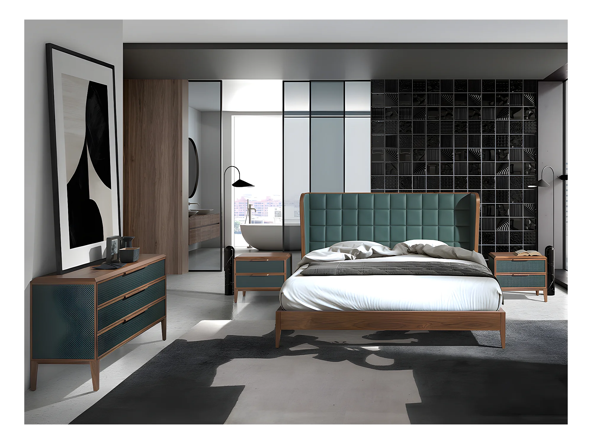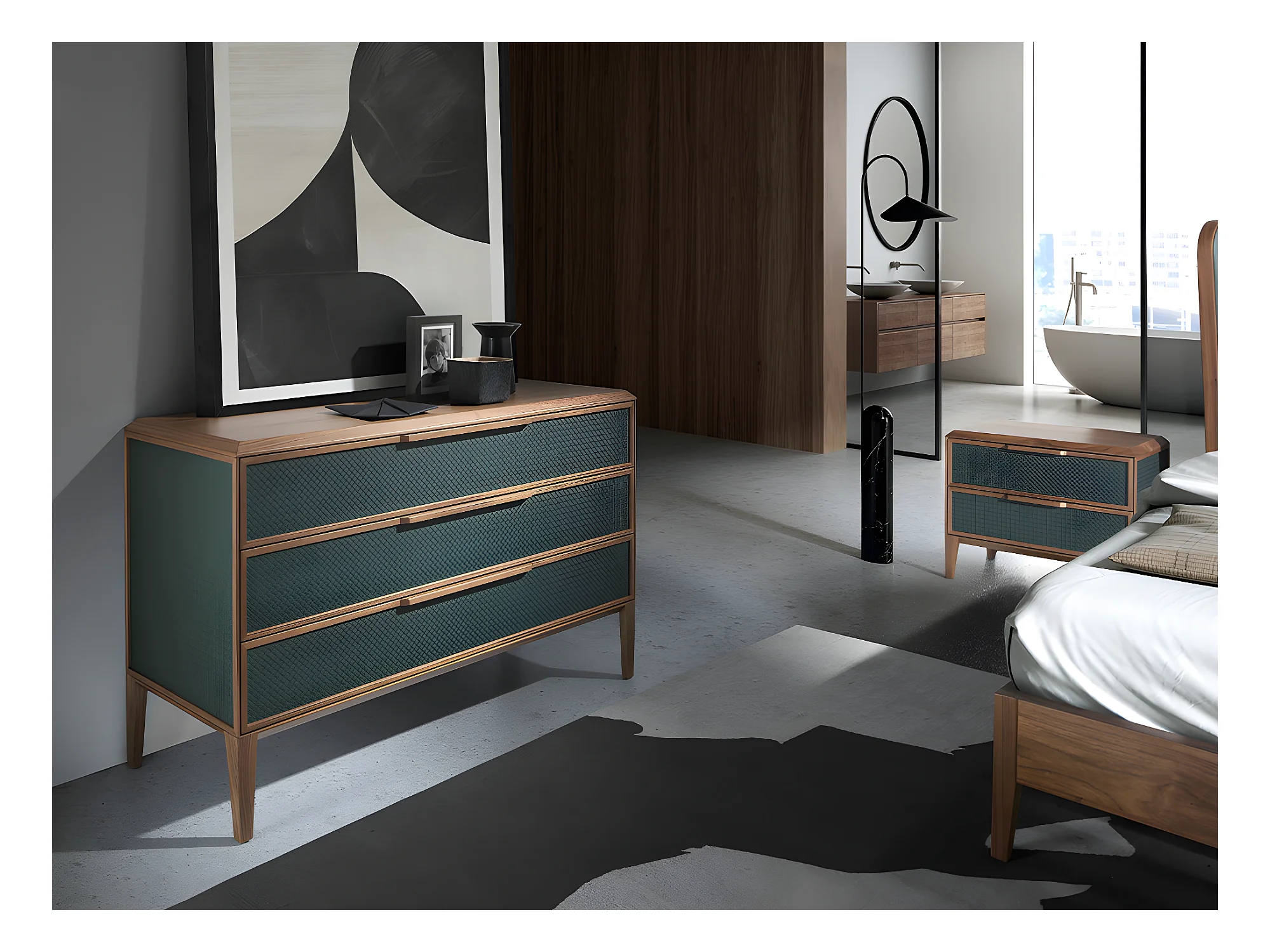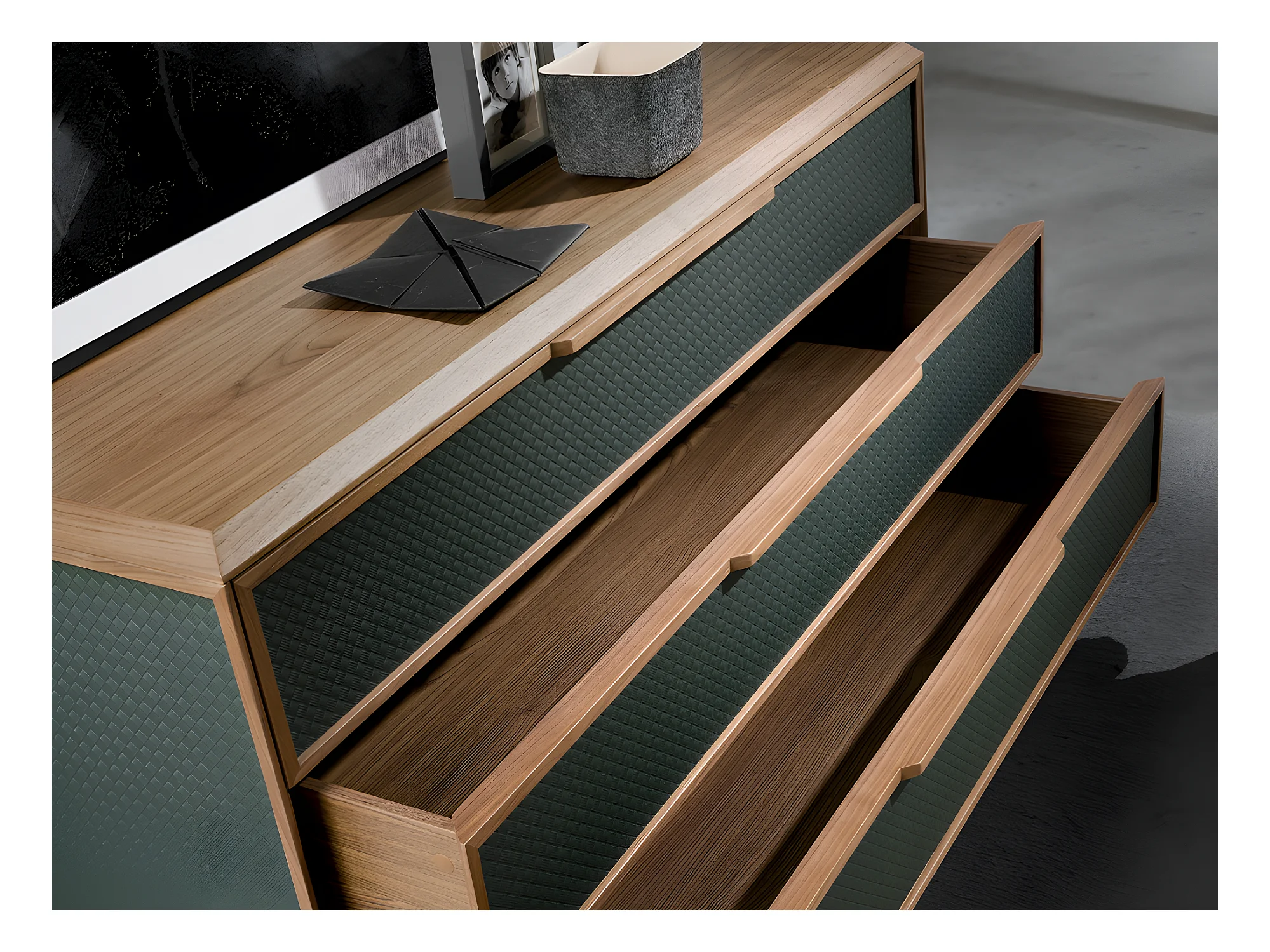Kommode aus dunkelgrünem und nussbaumfarbenem PVC 7150 ANGEL CERDA