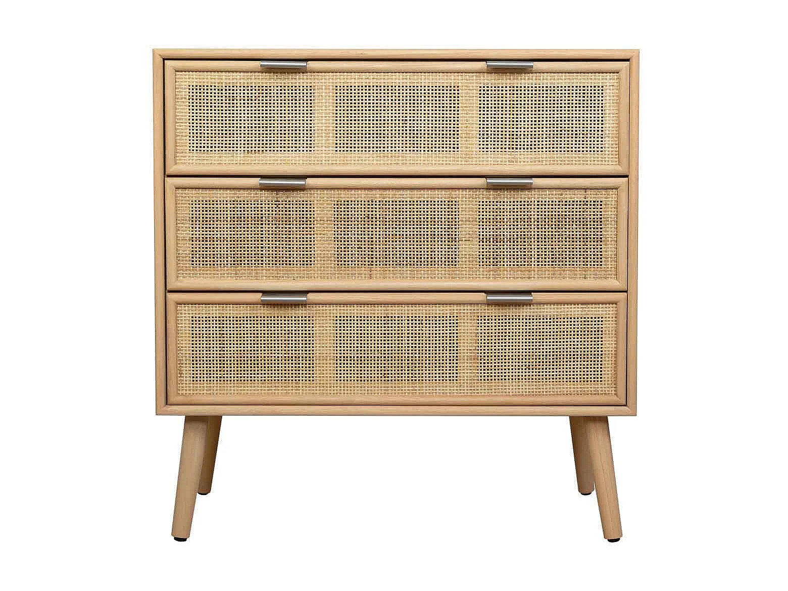 Braune Kommode mit 3 Schubladen aus Holz und Rattangitter 75x35x78h cm