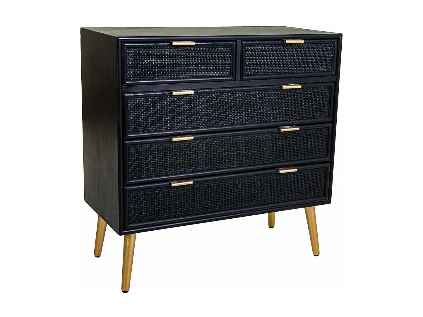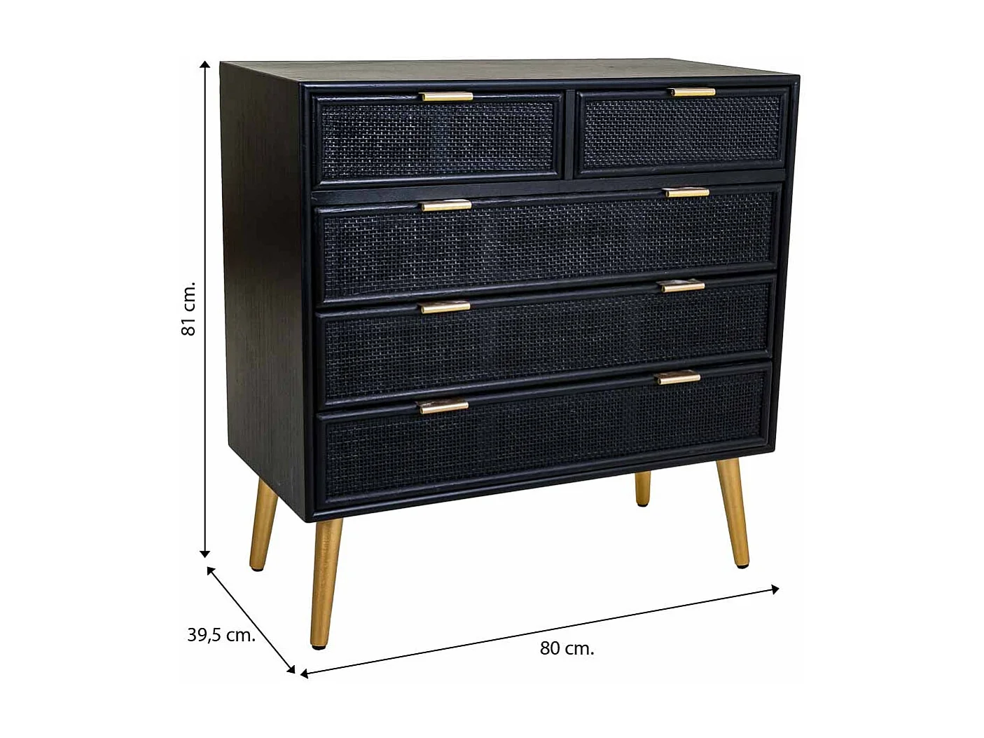 Kommode aus schwarz lackiertem Holz und Netz, 80 x 39,5 x 81 cm