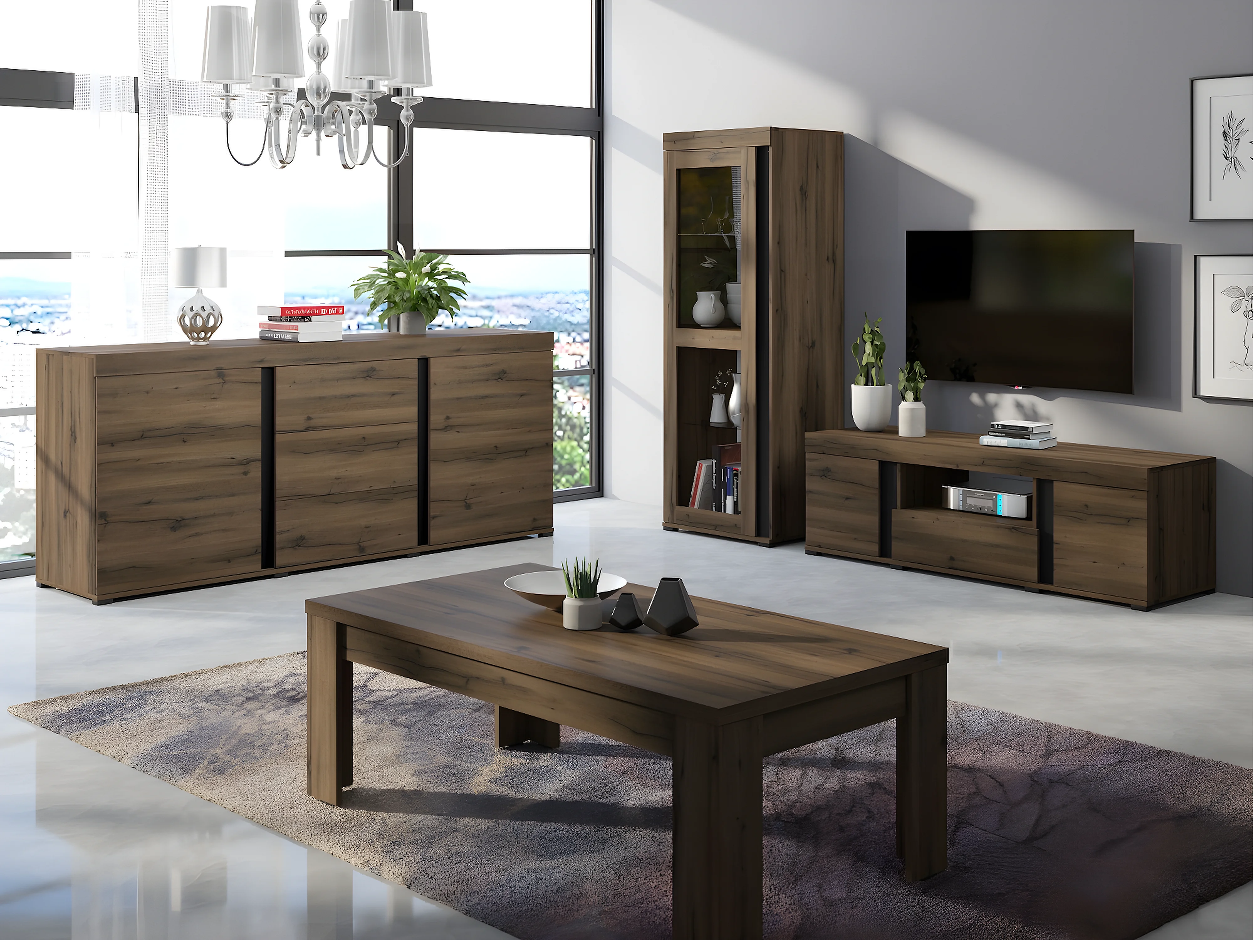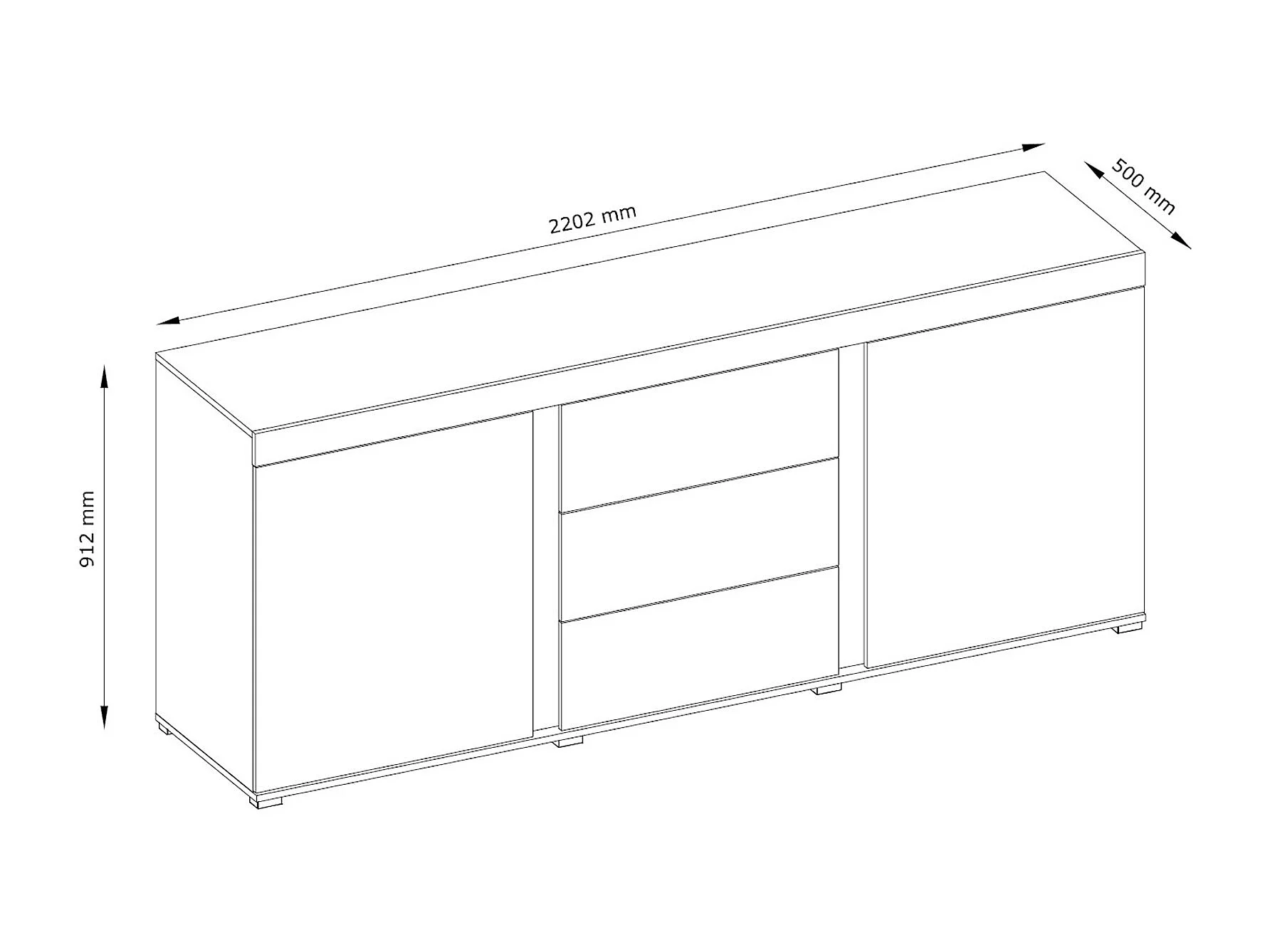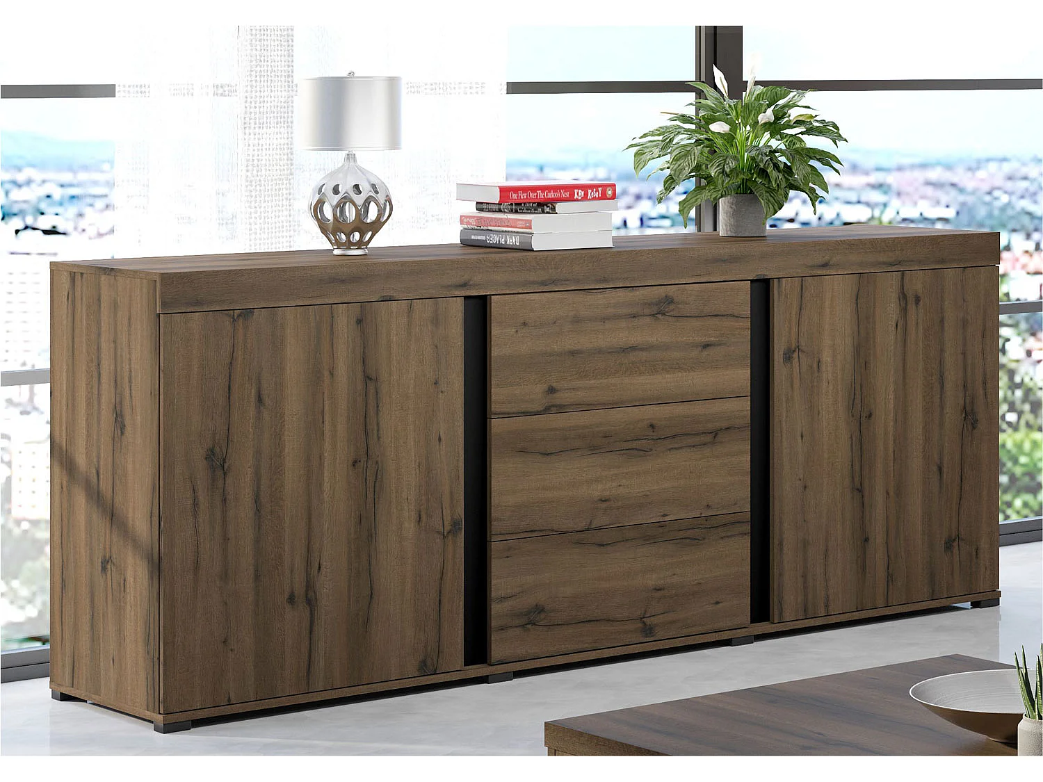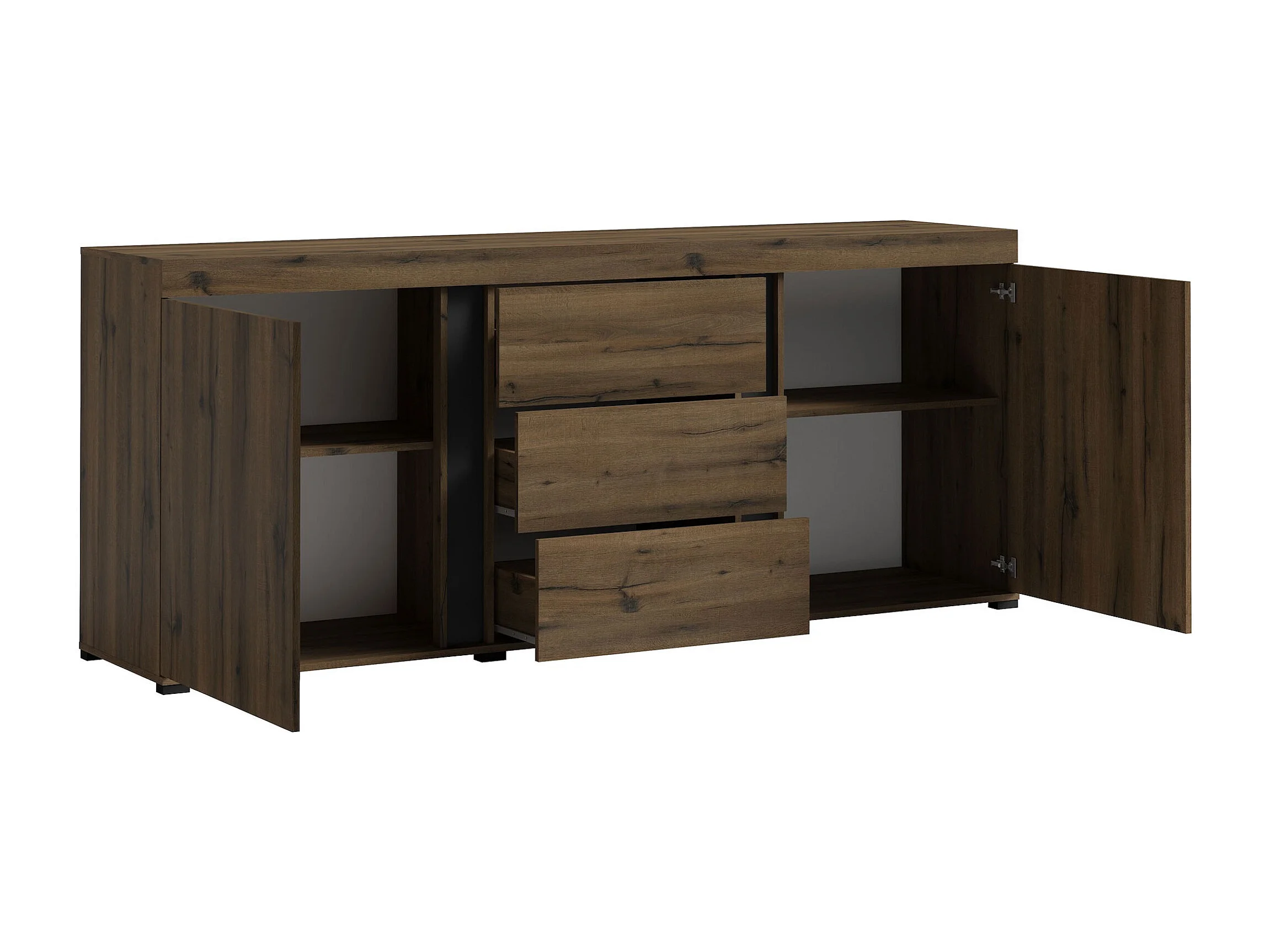 KOMMODE Avignon Edeleiche / Absetzungen schwarz, Rückwand weiß 220,2 / 50 / 91,2cm