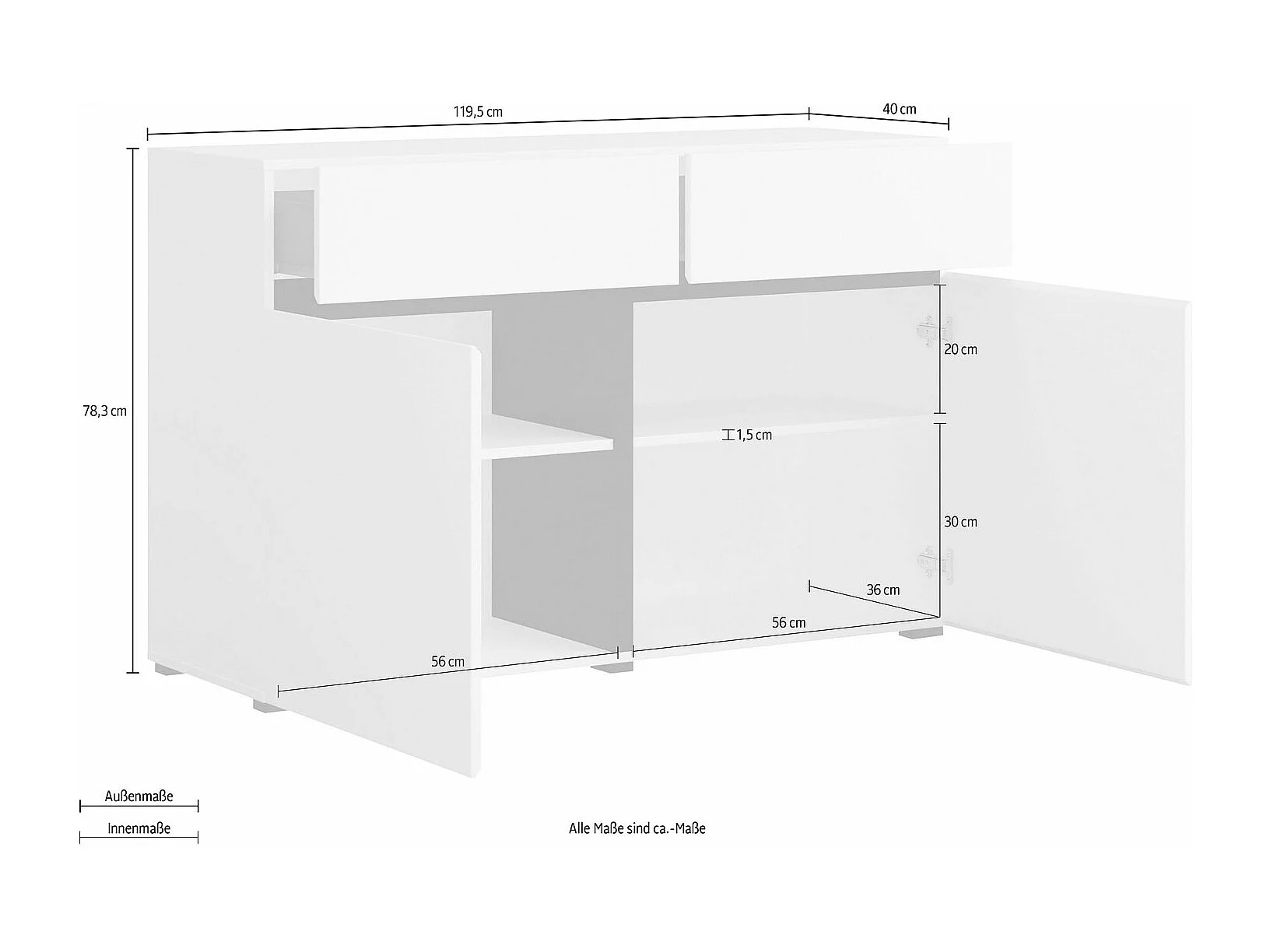 KOMMODE Cross Wotan Eiche / Schwarz 119,5 / 40 / 78cm