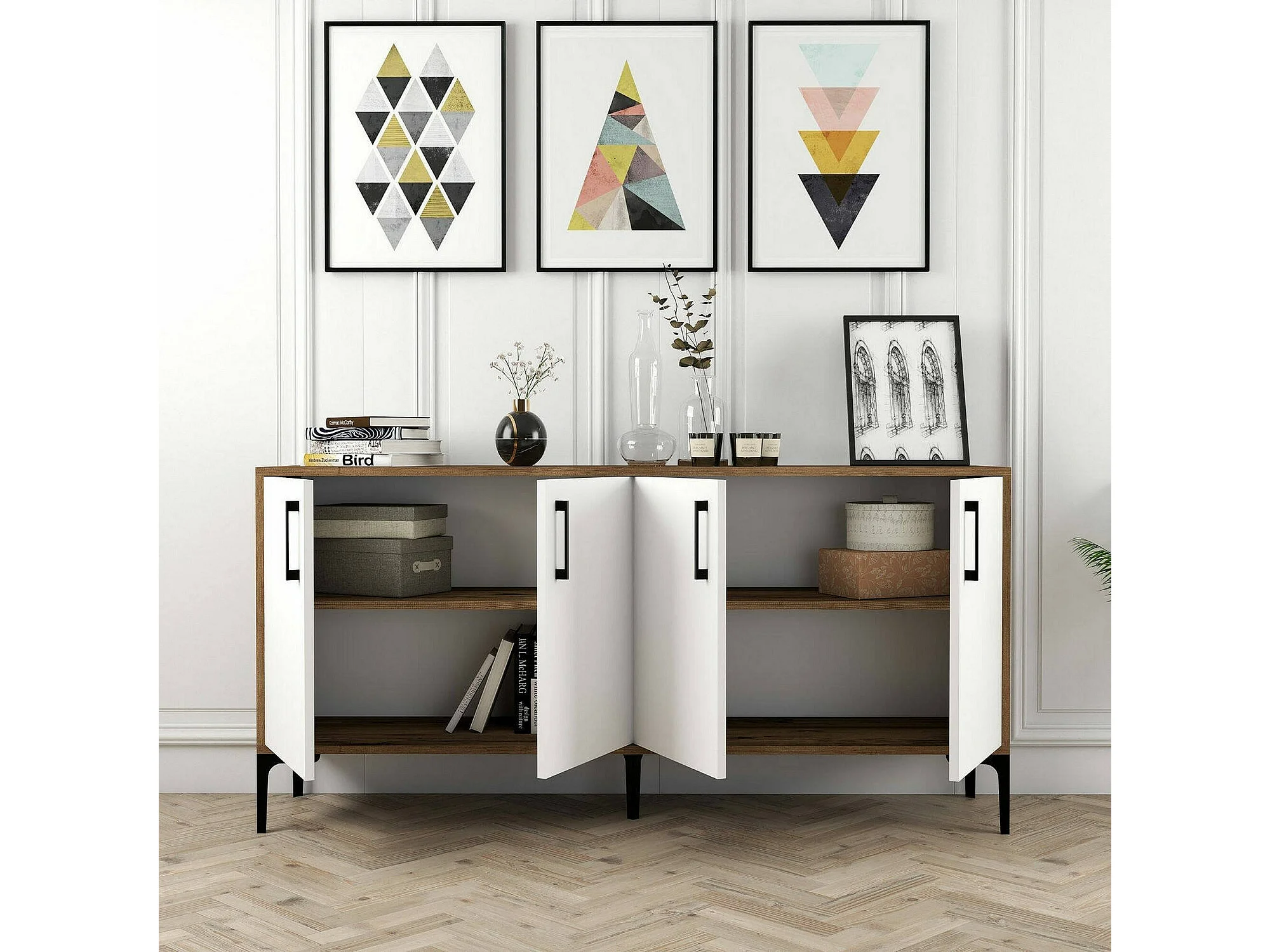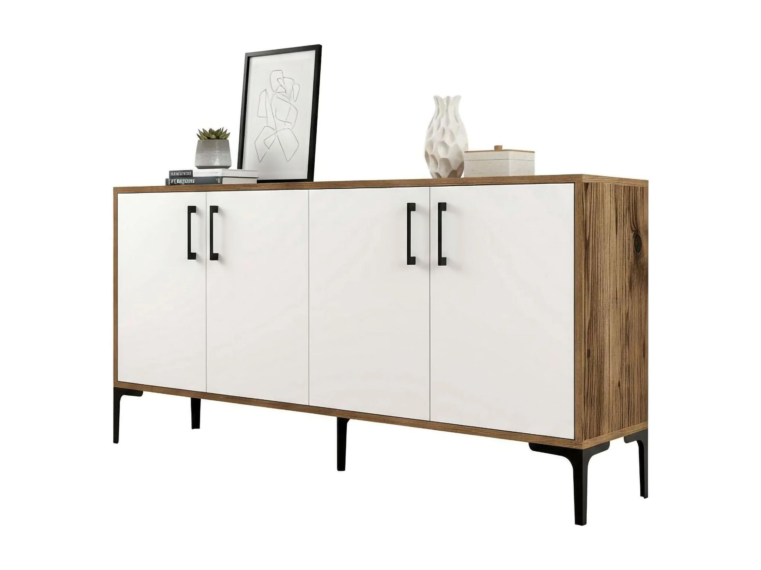 Kommode Daltobell, Wohnzimmerbuffet, Wohnzimmer-Sideboard, Moderne Küchen-Speisekammer, 160x35h78 cm, Walnuss und Weiß