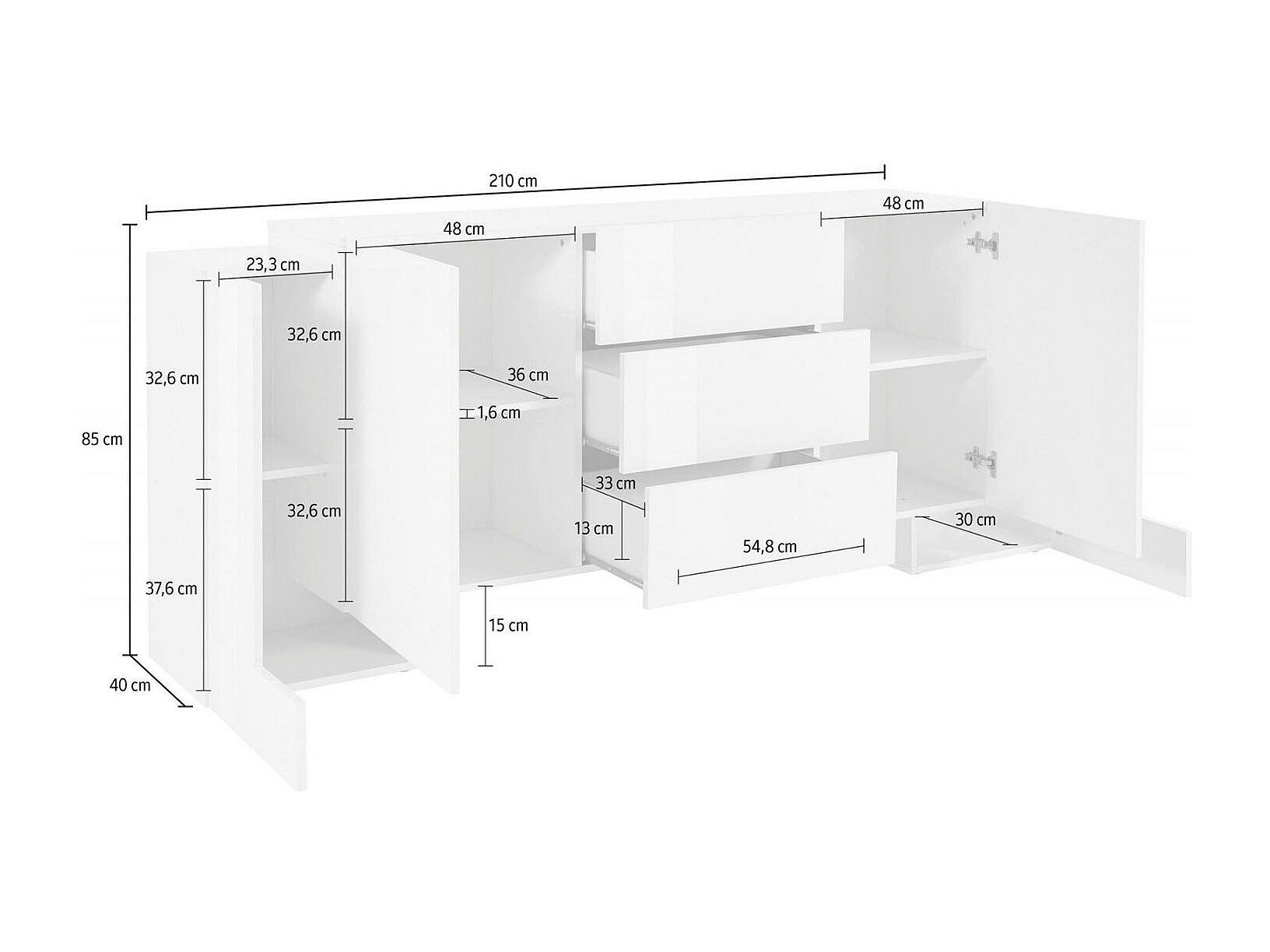Kommode Dcuom, Küchen-Sideboard mit 2 Türen und 3 Schubladen, Wohnzimmer-Buffet, Küchen-Sideboard, 100% Made in Italy, cm 210x45h85, glänzend weiß