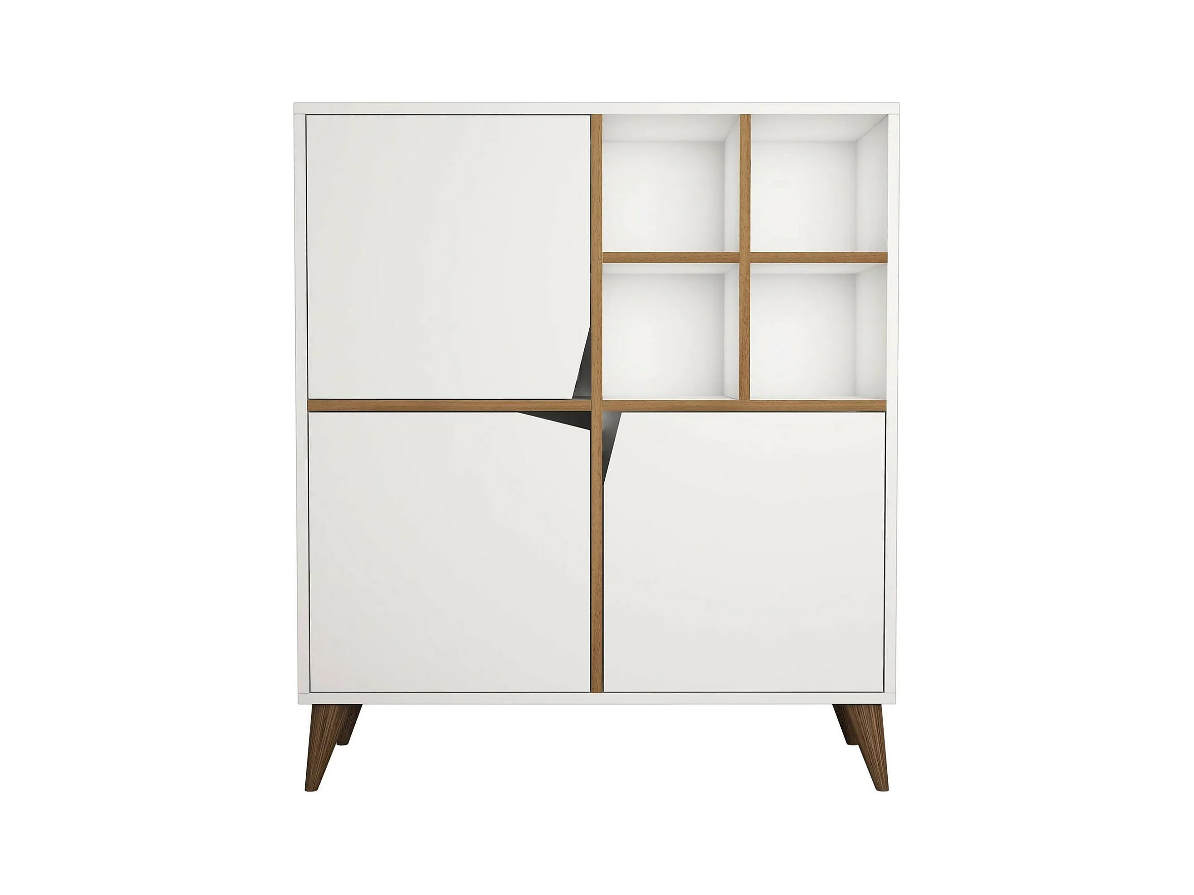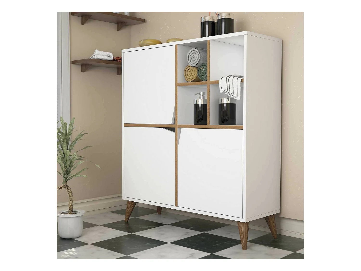 Kommode Ddiguglielm, Wohnzimmerbuffet, Wohnzimmer-Sideboard, Moderne Küchen-Speisekammer, 100x30 h115 cm, Weiß und Walnuss