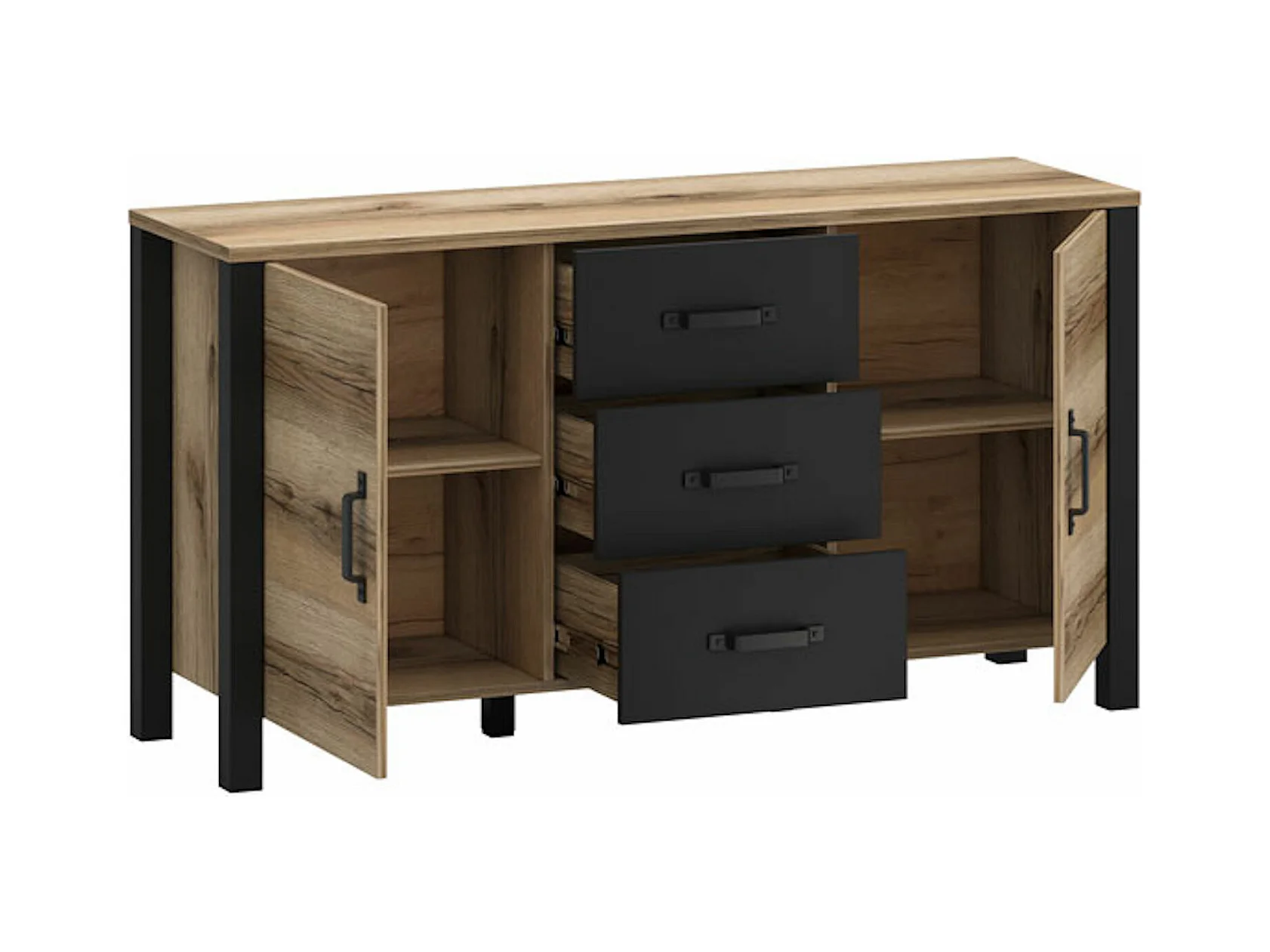 Kommode Derby Eiche Delano hell / schwarz 147 / 43 / 79 cm