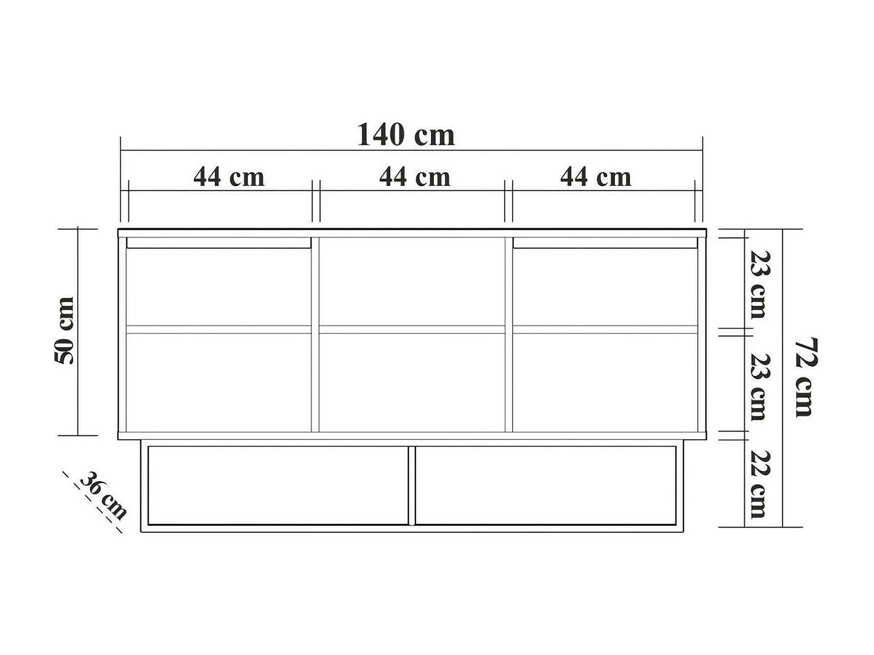 Kommode Deulofe, Wohnzimmerbuffet, Wohnzimmer-Sideboard, Moderne Küchen-Speisekammer, 140x36h72 cm, Walnuss und Schwarz