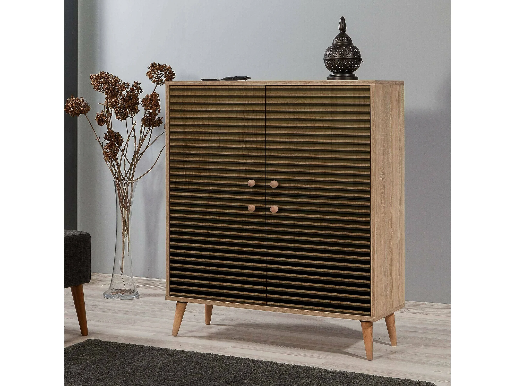 Kommode Dgiannin, Wohnzimmerbuffet, Wohnzimmer-Sideboard, Moderne Küchen-Speisekammer, 95x36h111 cm, Eiche