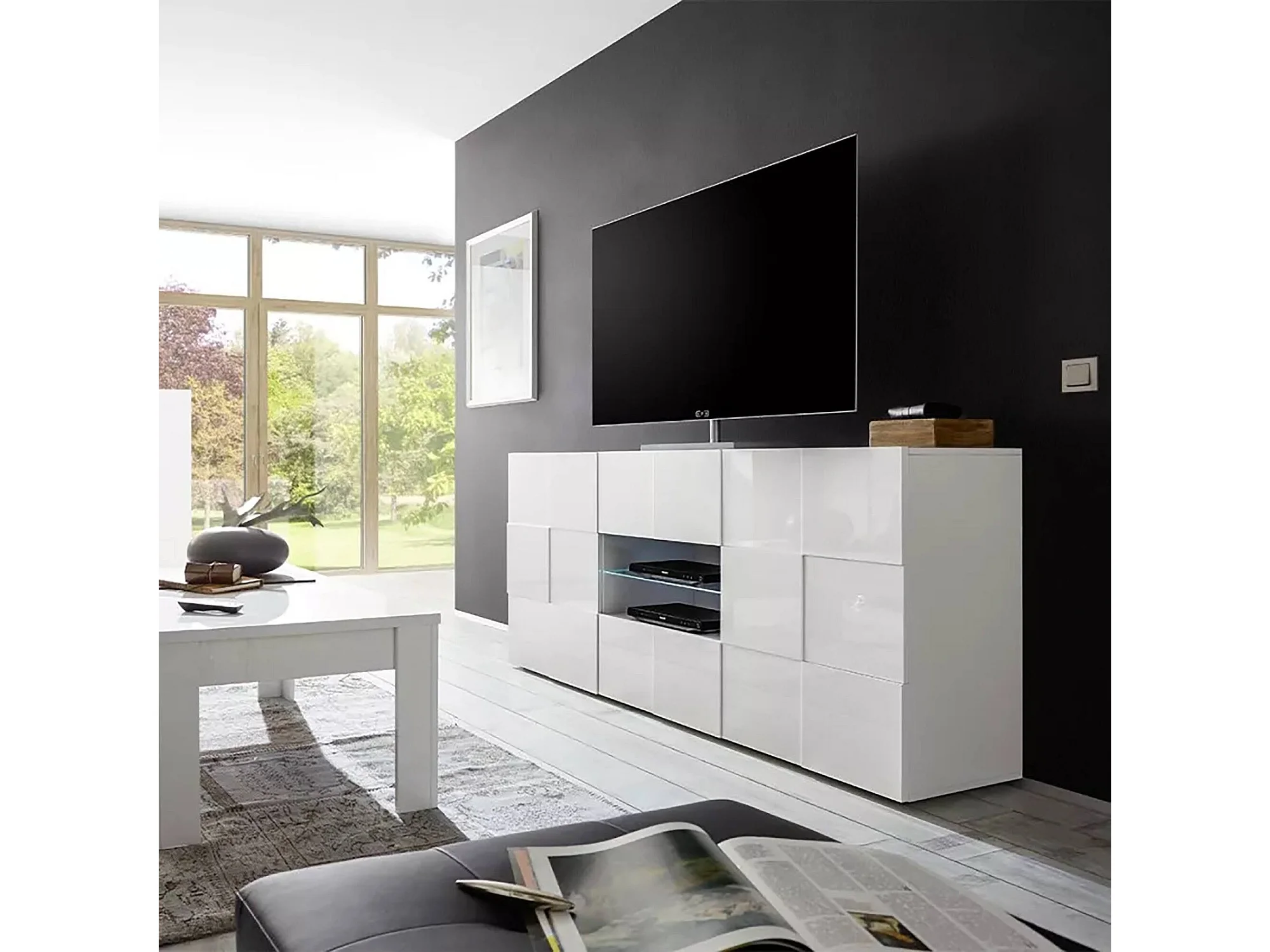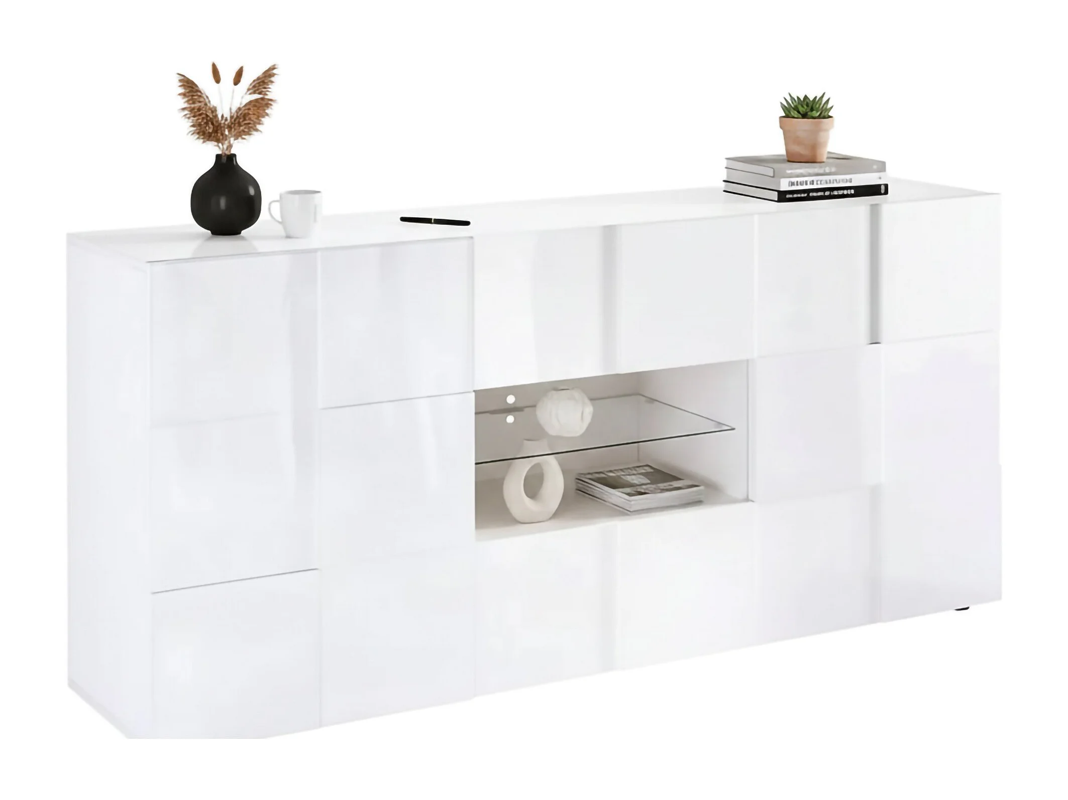 Kommode Dgober, Wohnzimmerbuffet, Wohnzimmer-Sideboard, Moderne Küchen-Speisekammer, Made in Italy, 181x43 h84 cm, Glänzendes Weiß
