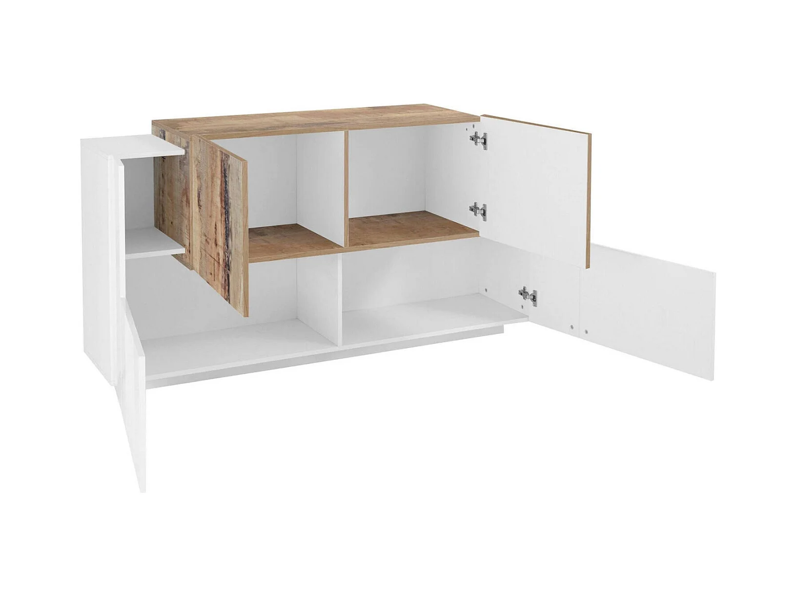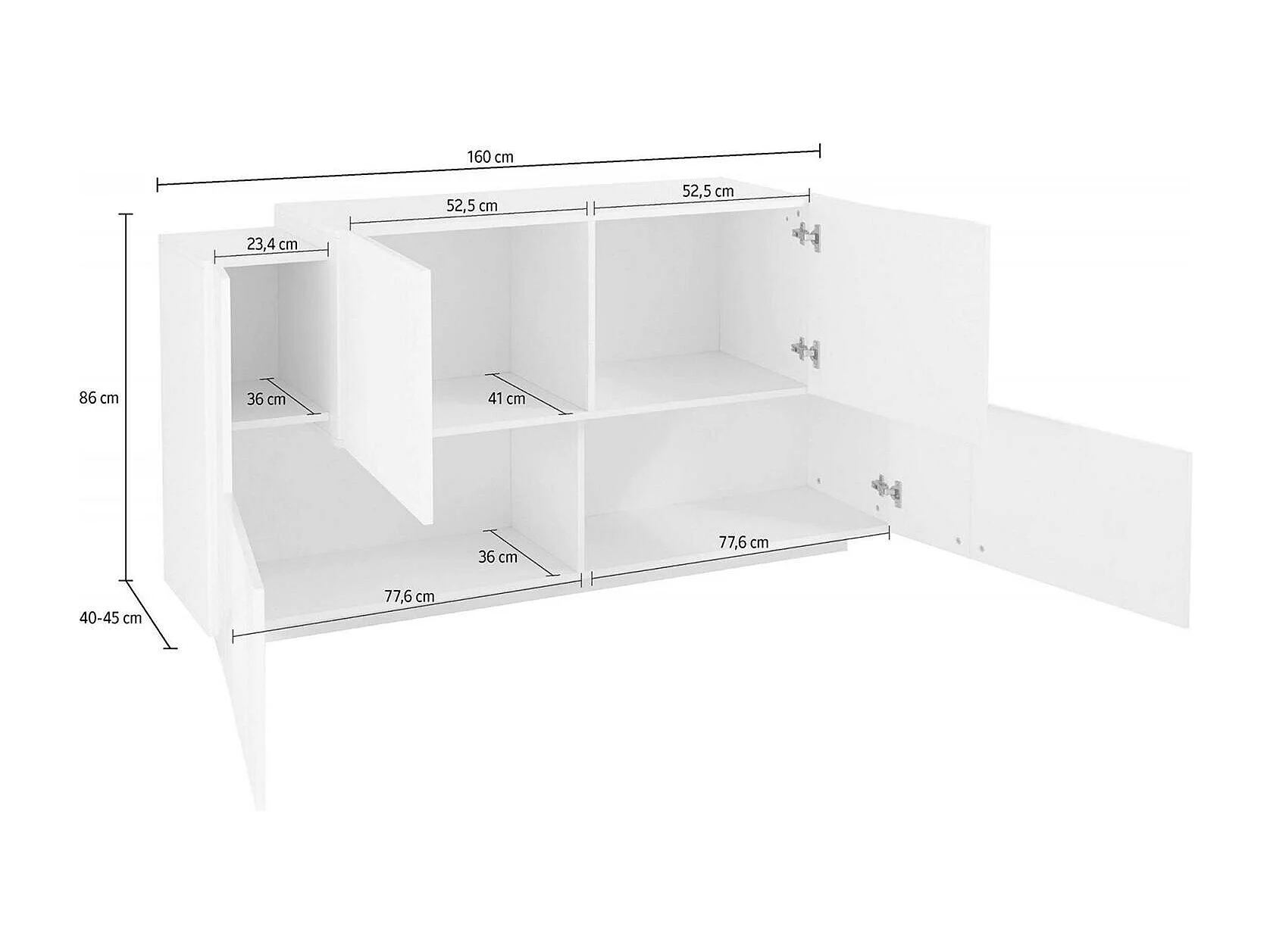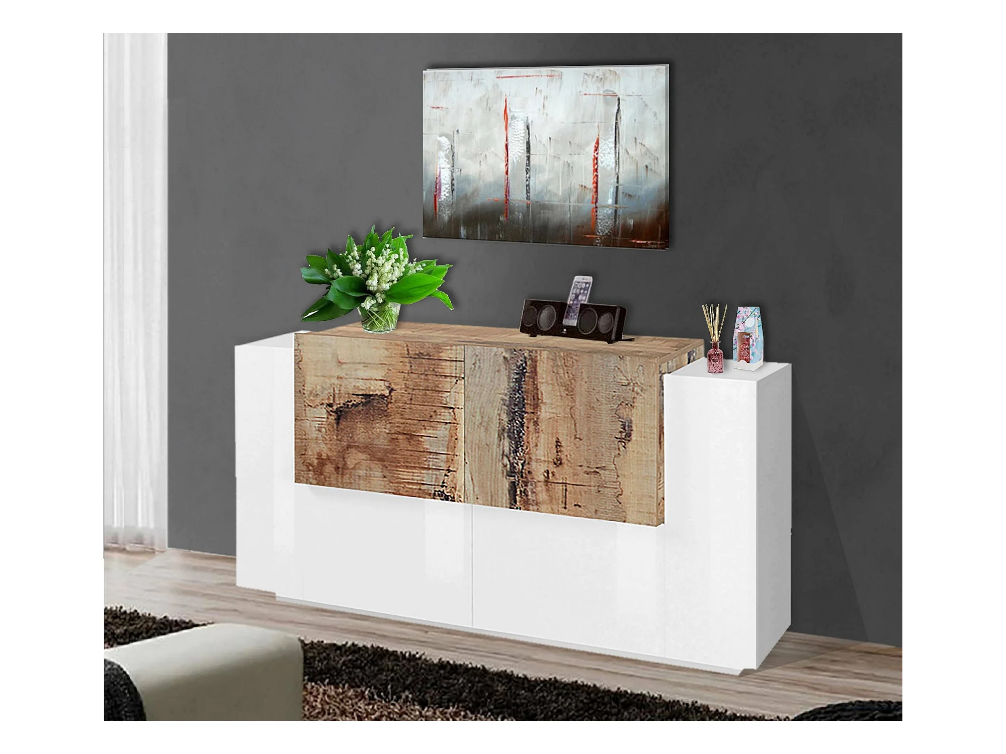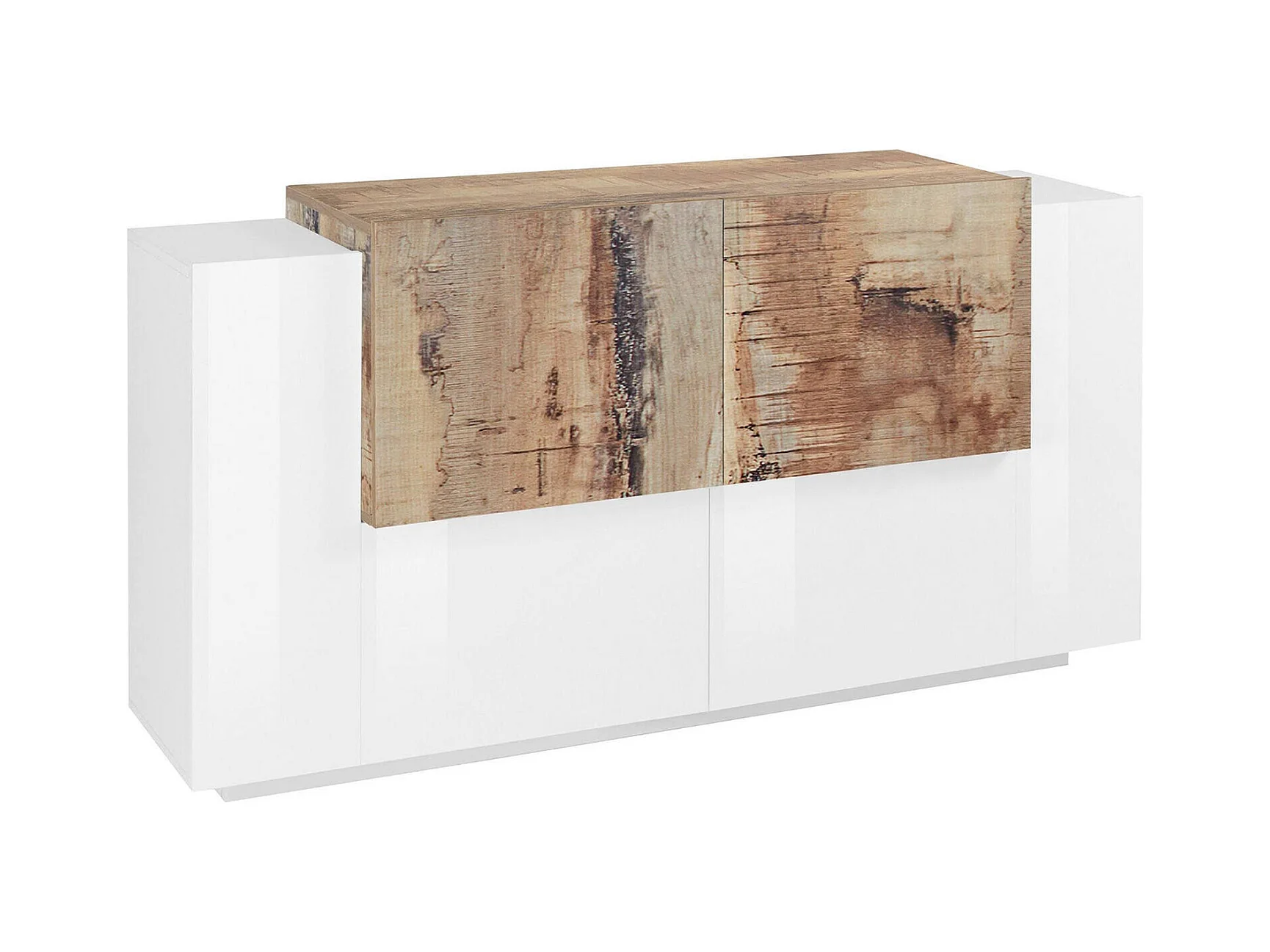 Kommode Dlenz, Küchen-Sideboard mit 4 Türen, Wohnzimmer-Buffet, 100 % Made in Italy, cm 160x45h86, glänzend weiß und Ahorn