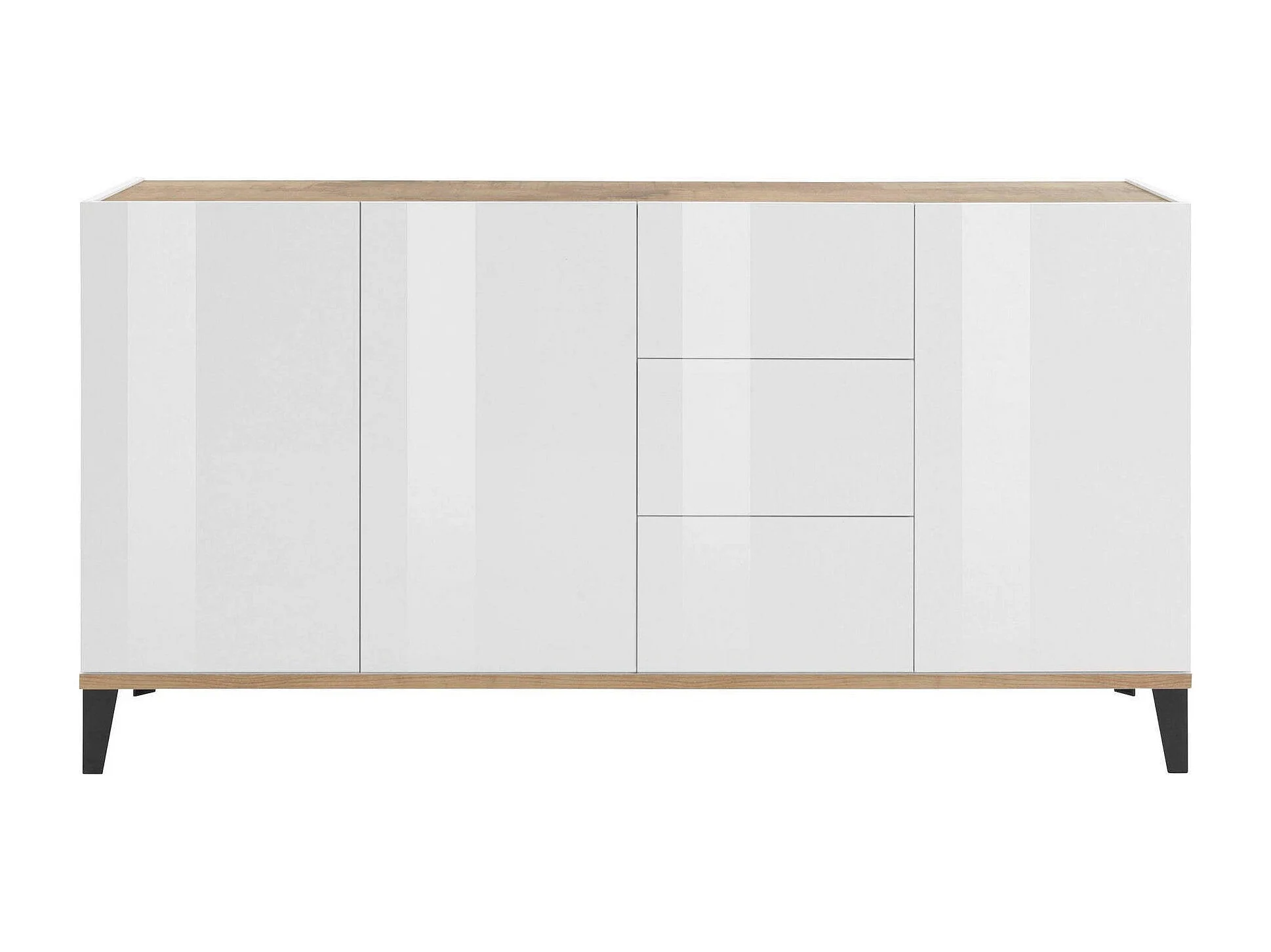 Kommode Dlong, Küchen-Sideboard mit 3 Türen und 3 Schubladen, Wohnzimmer-Buffet, 100% Made in Italy, cm 160x40h82, glänzend weiß und Ahorn