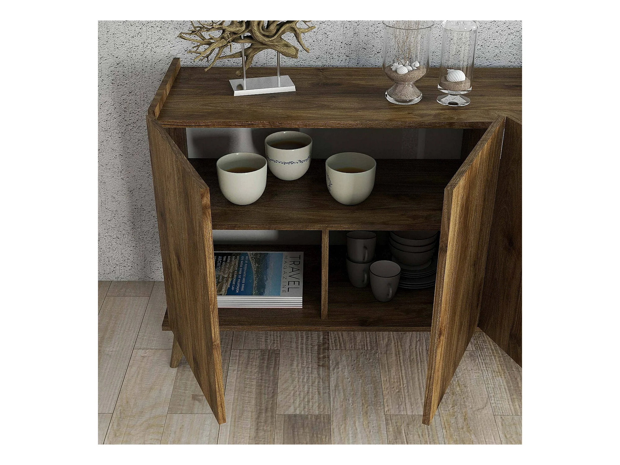Kommode Dmoscatell, Wohnzimmerbuffet, Wohnzimmer-Sideboard, Moderne Küchen-Speisekammer, 180x45 h81 cm, Nussbaum