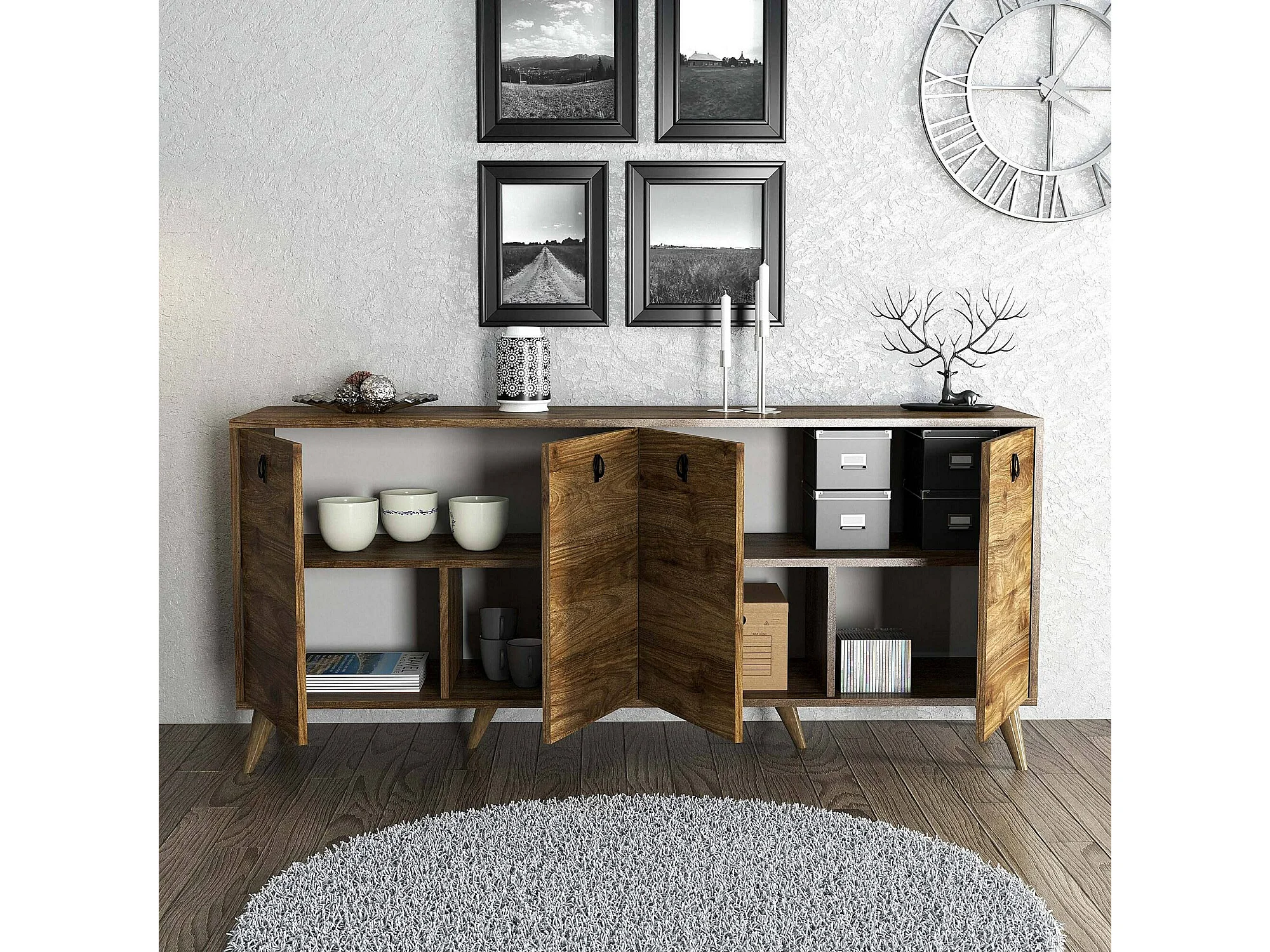Kommode Dmutarell, Wohnzimmerbuffet, Wohnzimmer-Sideboard, Moderne Küchen-Speisekammer, 180x45 h80 cm, Nussbaum