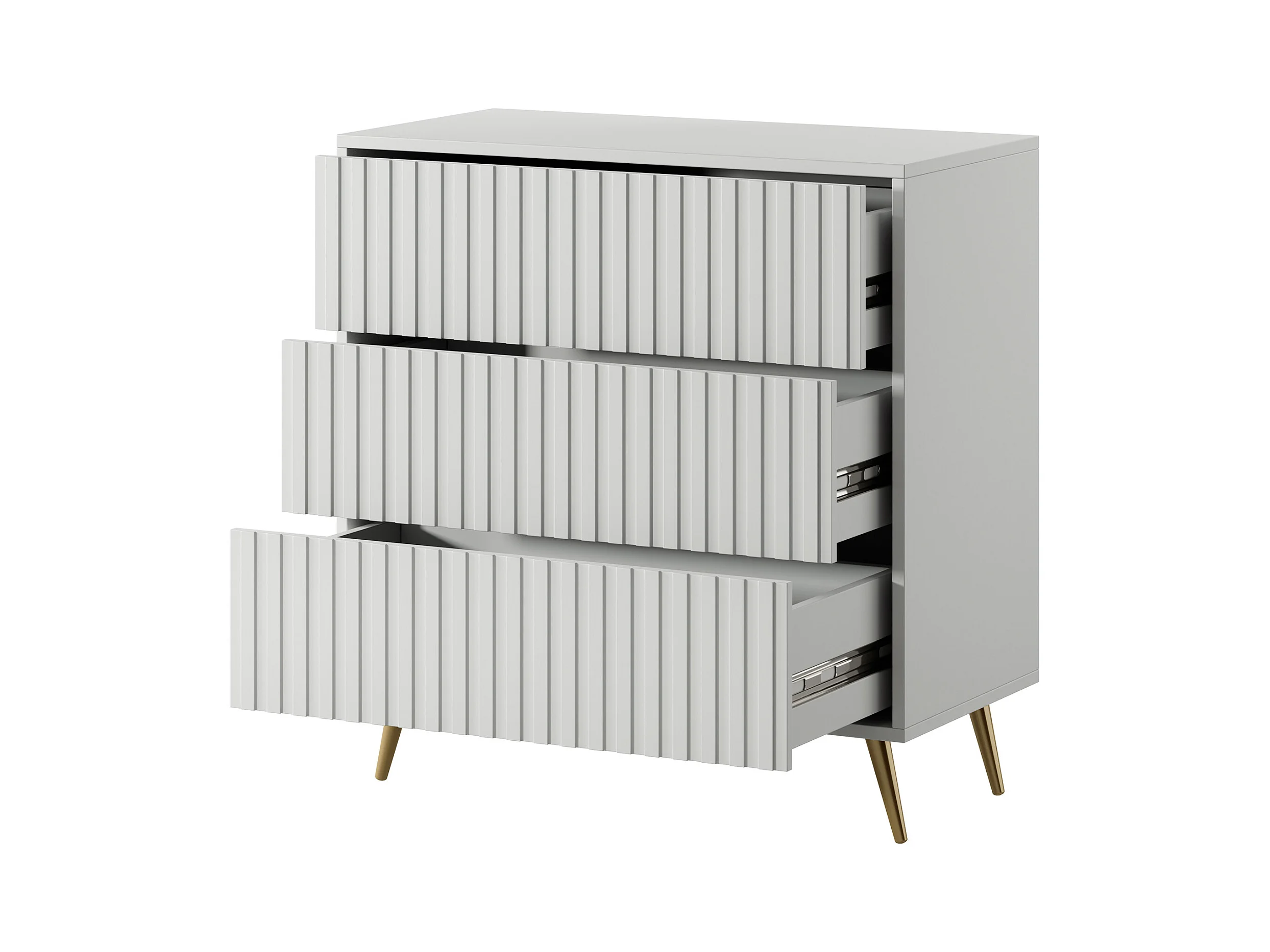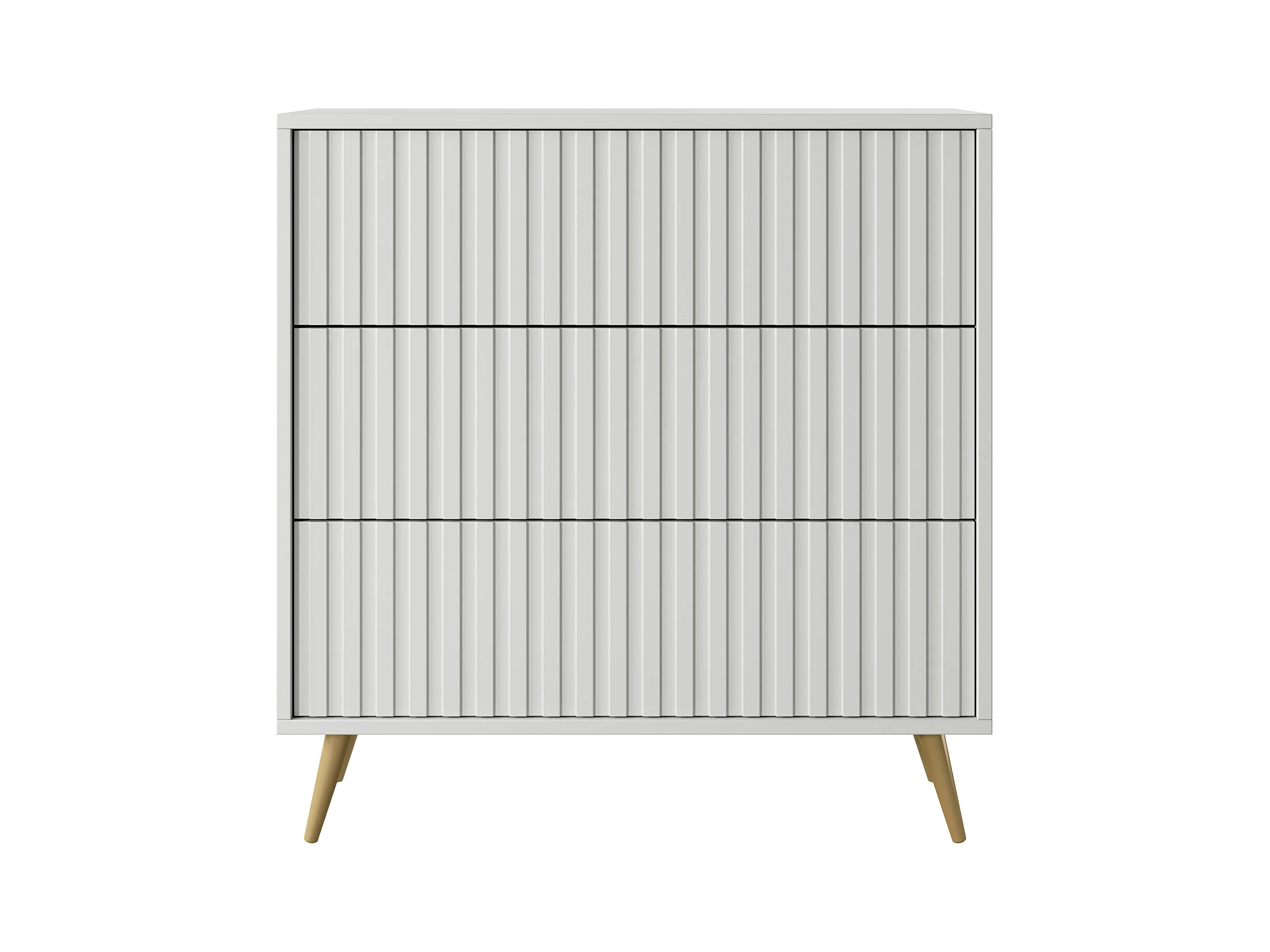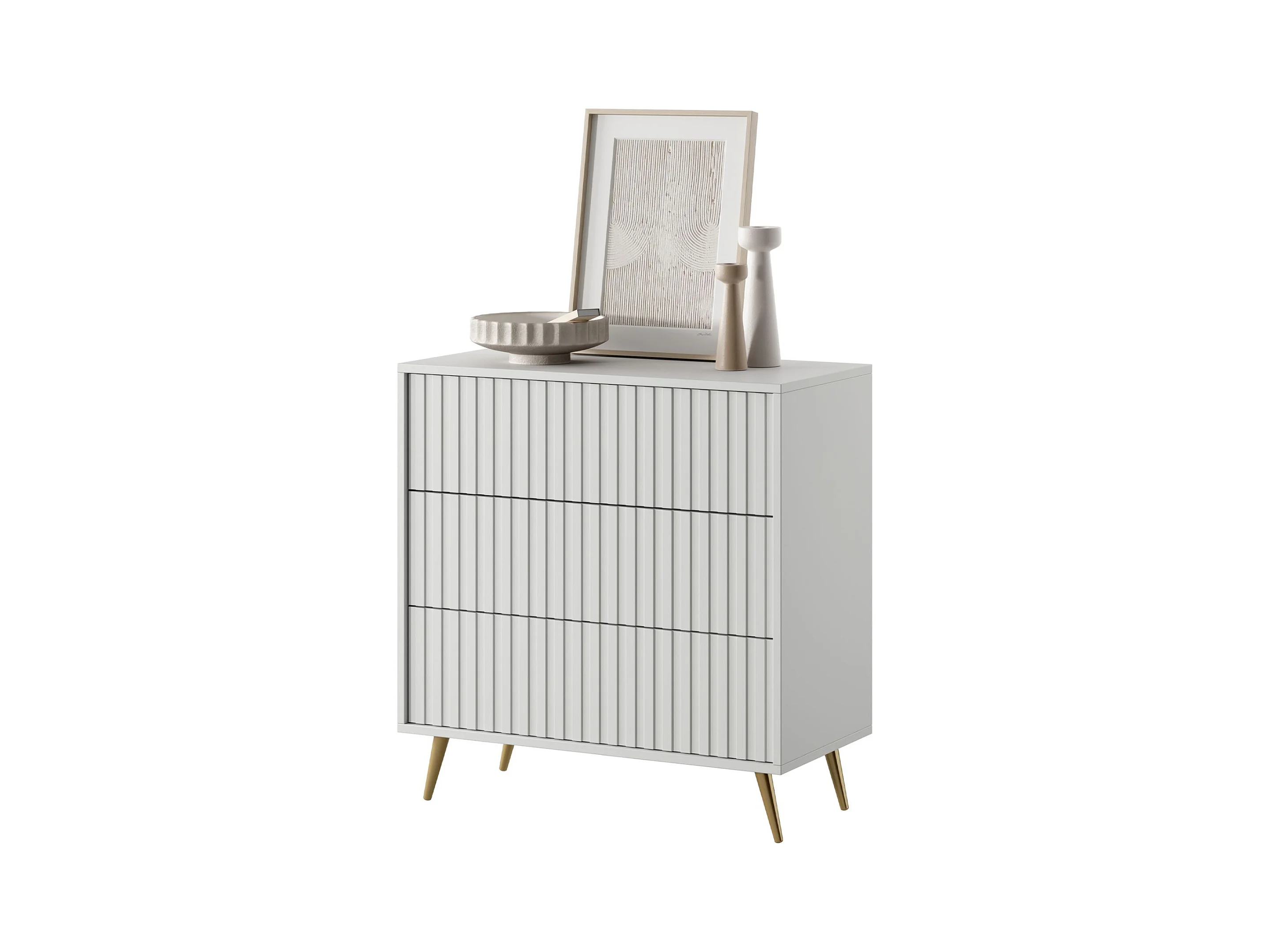 Kommode Doppelkommode mit 3 Schubladen Weiß mit goldenen Füßen 79 cm - BELLO