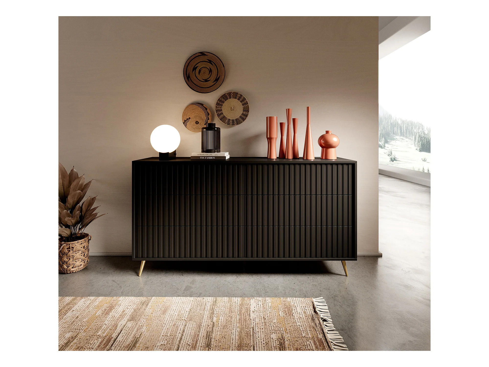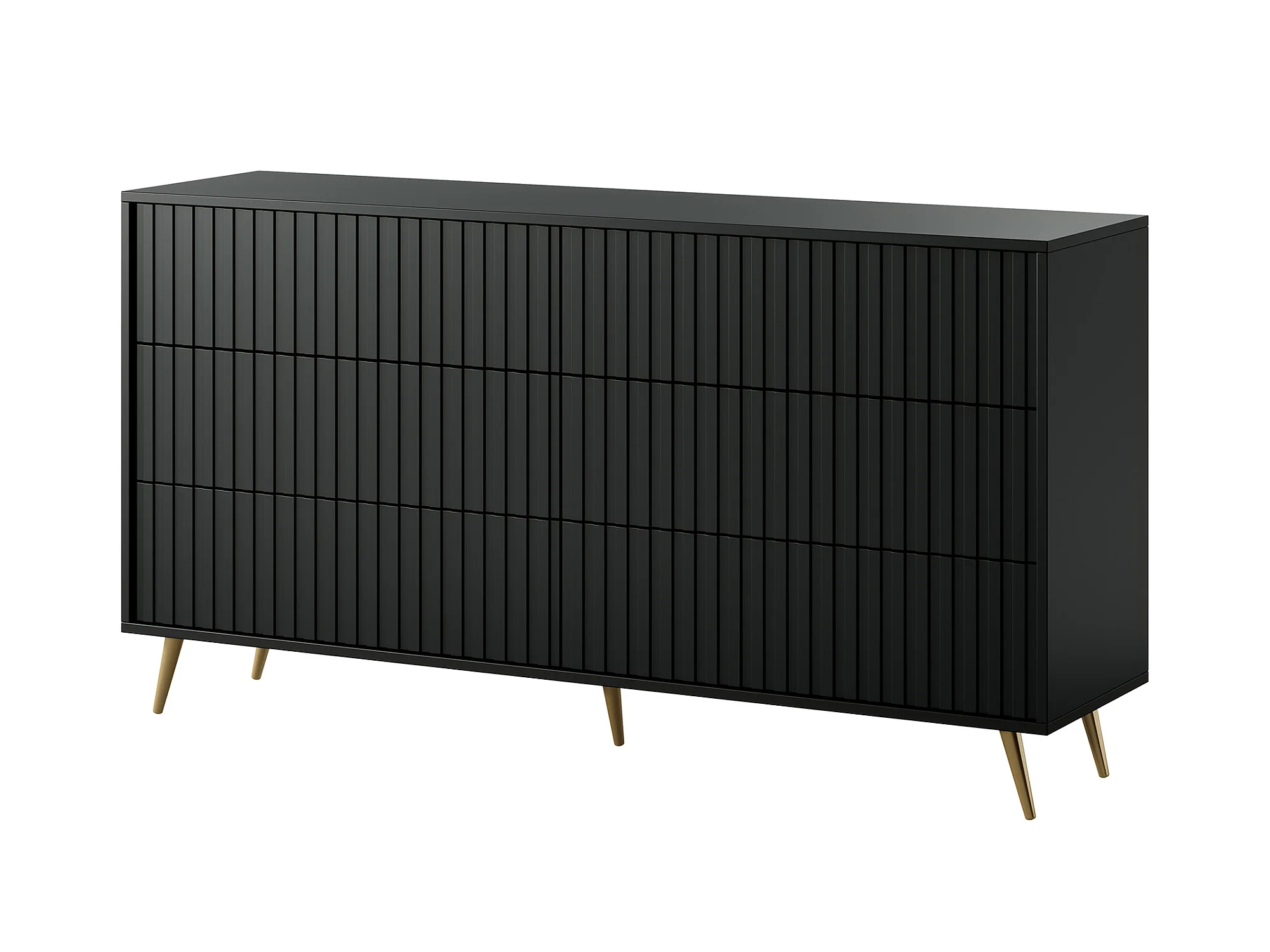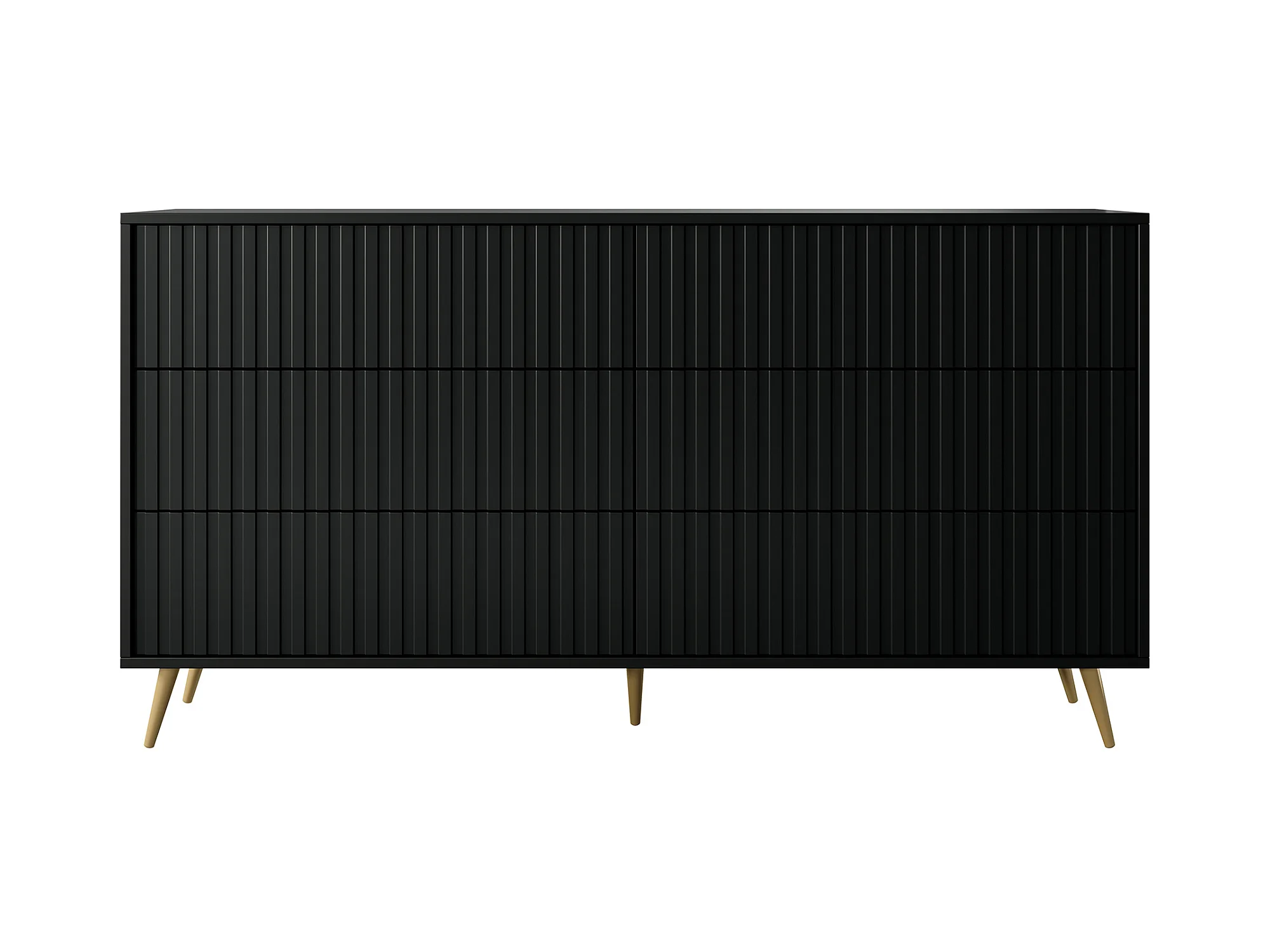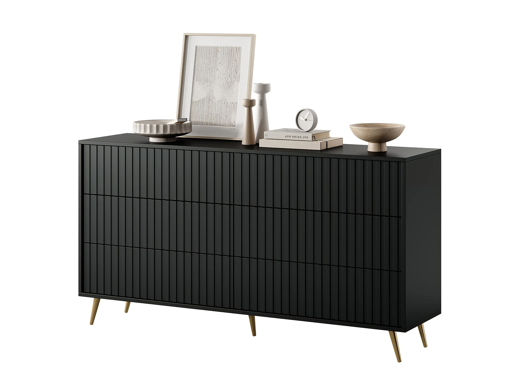Kommode Doppelkommode mit 6 Schubladen Schwarz mit goldenen Füßen 154 cm - BELLO