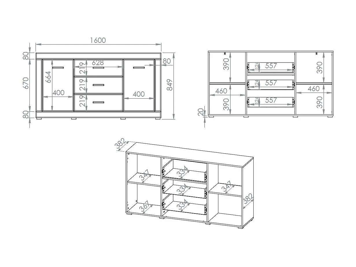 KOMMODE Dora Evoke Eiche 160 / 40 / 85 cm