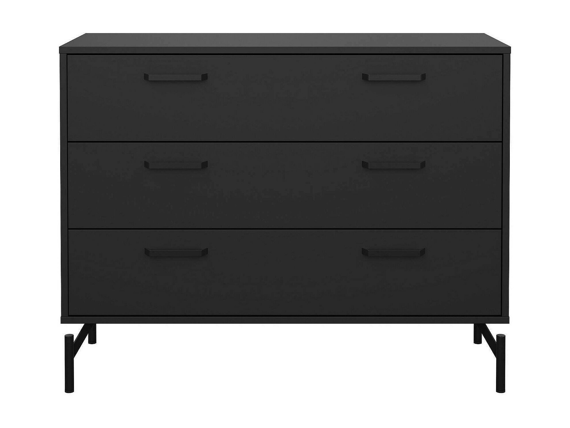KOMMODE - Mehrzweckkommode, Schlafzimmerkommode, Schrank mit Schubladen, 99x40 h77 cm, Schwarz. AUFBAU UND VERWENDUNG - Kommode mit Schubladen - Niedrige Mehrzweckkommode, perfekt für die praktische und elegante Einrichtung eines Schlafzimmers, Wohnzimmers, Schlafzimmers, Flurs oder Schranks zusätzlich zu einem Kleiderschrank - Die Schubladen sind sehr geräumig, So können Sie alles, was Sie brauchen, diskret und ordentlich darin verstauen - Artikel mit modernem und funktionalem Design Auf der Oberseite können Sie Ihre Lieblingsornamente platzieren, um dem Produkt einen individuellen Stil zu verleihen und die Möbel zu vervollständigen. QUALITÃ"T UND DESIGN - Modernes und elegantes Design-Möbelstück, perfekt für die Einrichtung einer zeitgemäßen und hellen Umgebung - Ideal für alle, die nach Funktionalität und platzsparenden Lösungen suchen, ist dieses Produkt perfekt für Häuser und Wohnungen aller Größen - Zwei Jahre Garantie ab Kaufdatum. TECHNISCHE EIGENSCHAFTEN ? Vielseitiges Einrichtungszubehör, konzipiert für die einfache Integration mit anderen Möbeln ? Widerstandsfähige Verpackung, konzipiert für den E-Commerce - Material: Melaminbeschichtete Spanplatte - Zusätzliche Infos: EPA 40 CFR TSCA-zertifizierter Artikel ? Formaldehydfreisetzung gemäß den Richtlinien IOS/MAT/0181/EN 17030 ? zerlegt ? ausgestattet mit Montagesatz ? drei Schubladen. ABMESSUNGEN IN CM - Kommode : Länge: 98,7 Breite: 39,8 Höhe: 76,6 - Zusätzliche Abmessungen: Schubladenöffnung: 21,4 cm