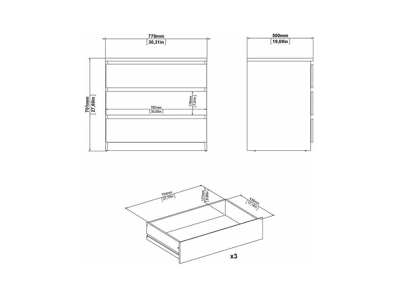 Kommode Drenold, Mehrzweckkommode, Schlafzimmerkommode, Schrank mit Schubladen, 77x50 h70 cm, Eiche