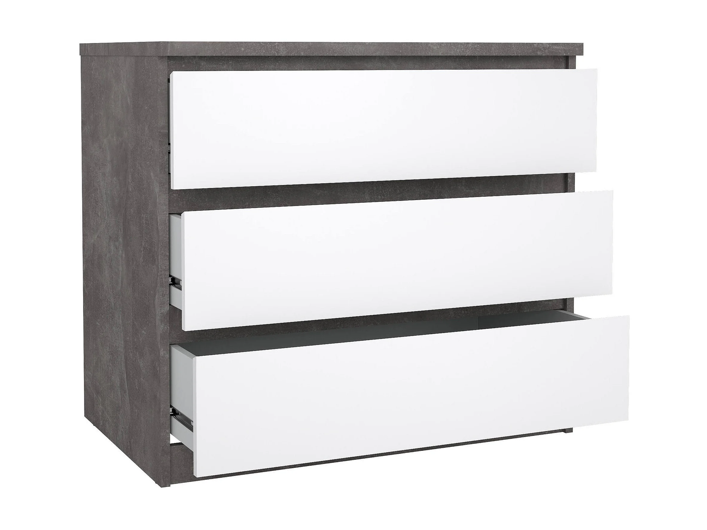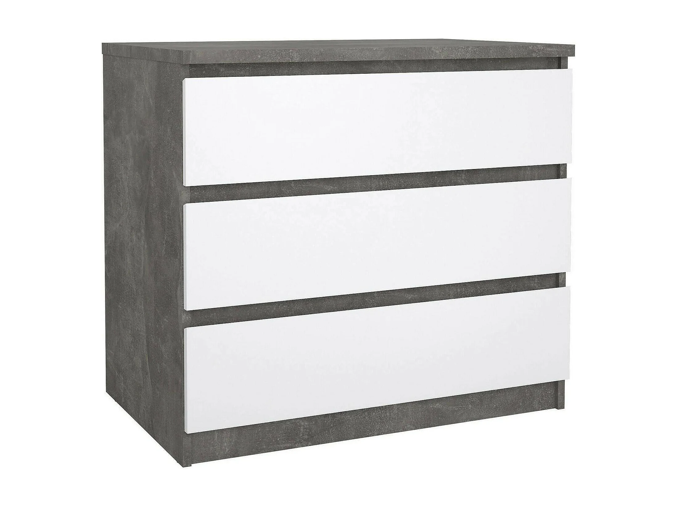 Kommode Drenold, Mehrzweckkommode, Schlafzimmerkommode, Schrank mit Schubladen, 77x50 h70 cm, Zement und Weiß
