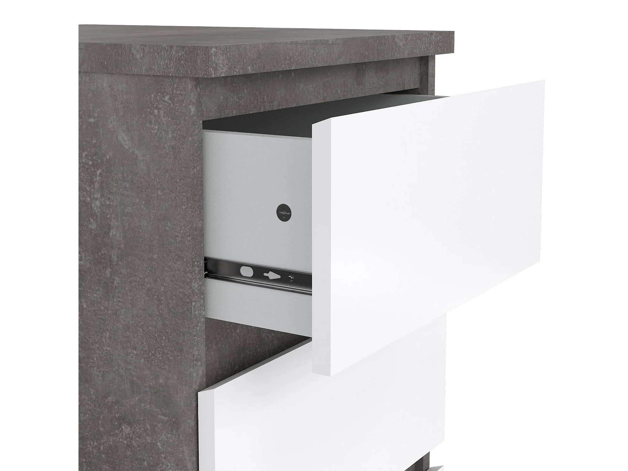 Kommode Drepett, Mehrzweckkommode, Schlafzimmerkommode, Schrank mit Schubladen, 50x40 h70 cm, Zement und Weiß