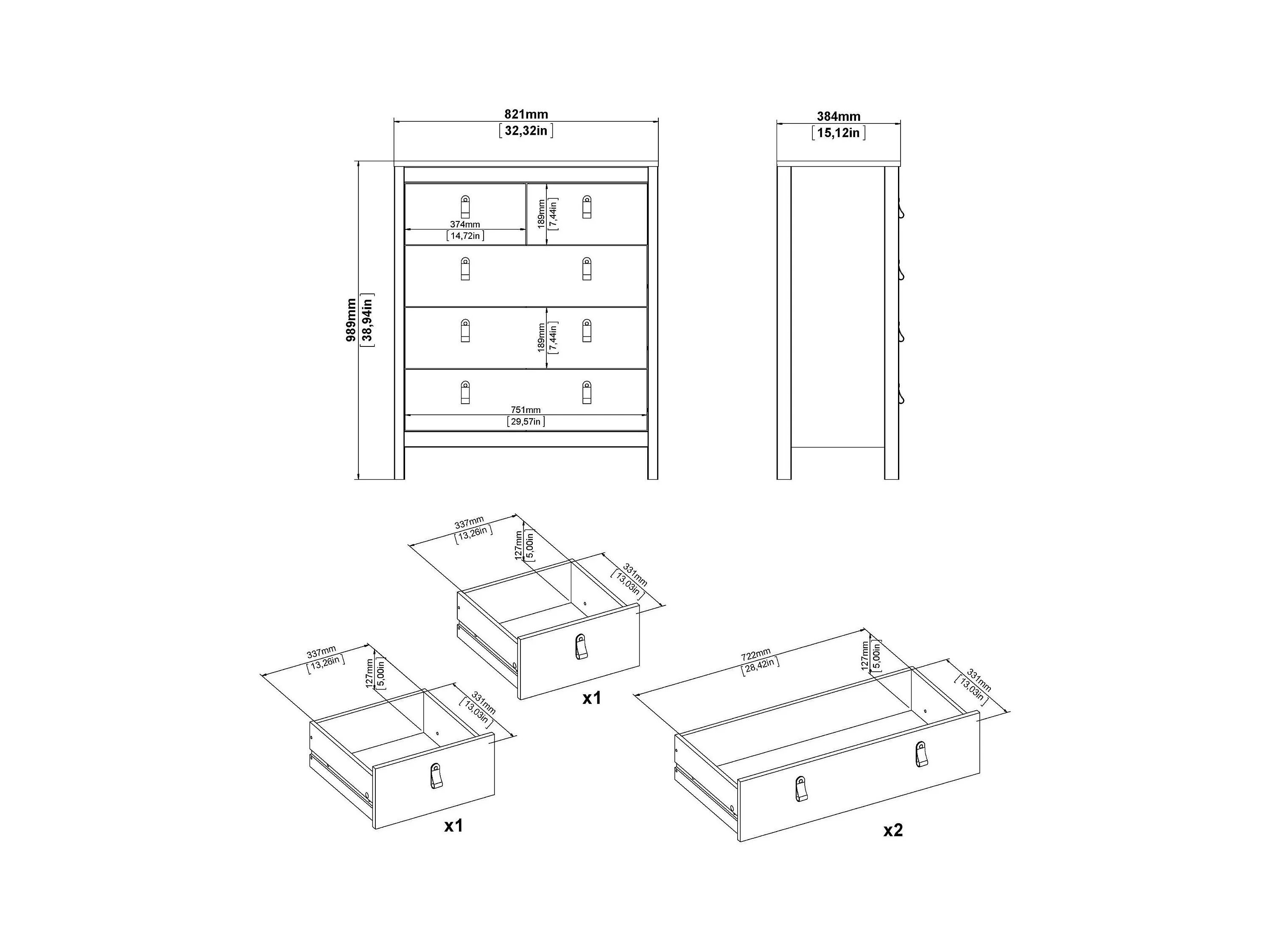 Kommode Drizzol, Mehrzweckkommode, Schlafzimmerkommode, Schrank mit Schubladen, 82x38 h99 cm, Schwarz