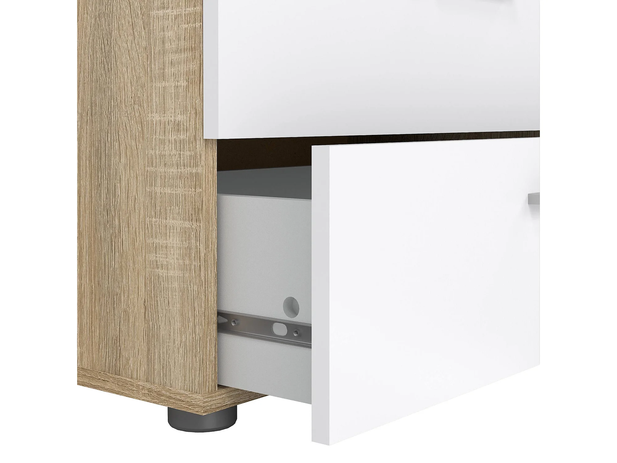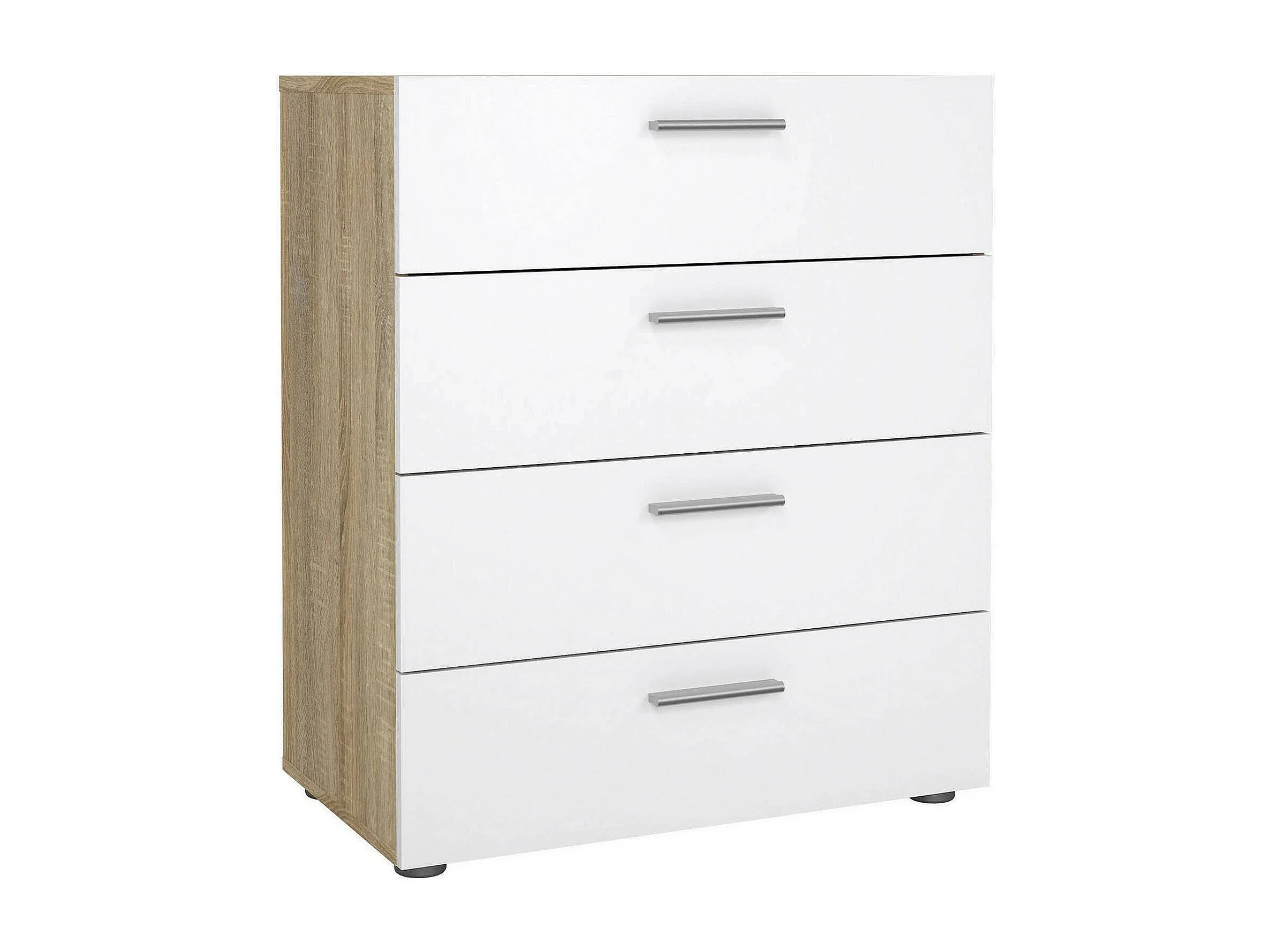 Kommode Dromagn, Mehrzweckkommode, Schlafzimmerkommode, Schrank mit Schubladen, 70x40 h82 cm, Eiche und Weiß