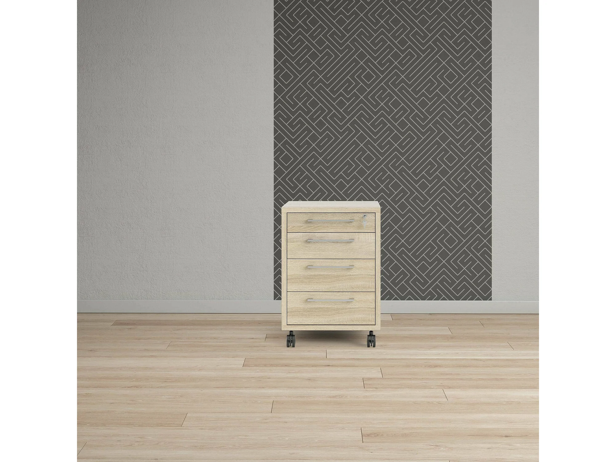 Kommode Dromer, Mehrzweckkommode, Schlafzimmerkommode, Schrank mit Schubladen, 49x48 h68 cm, Eiche