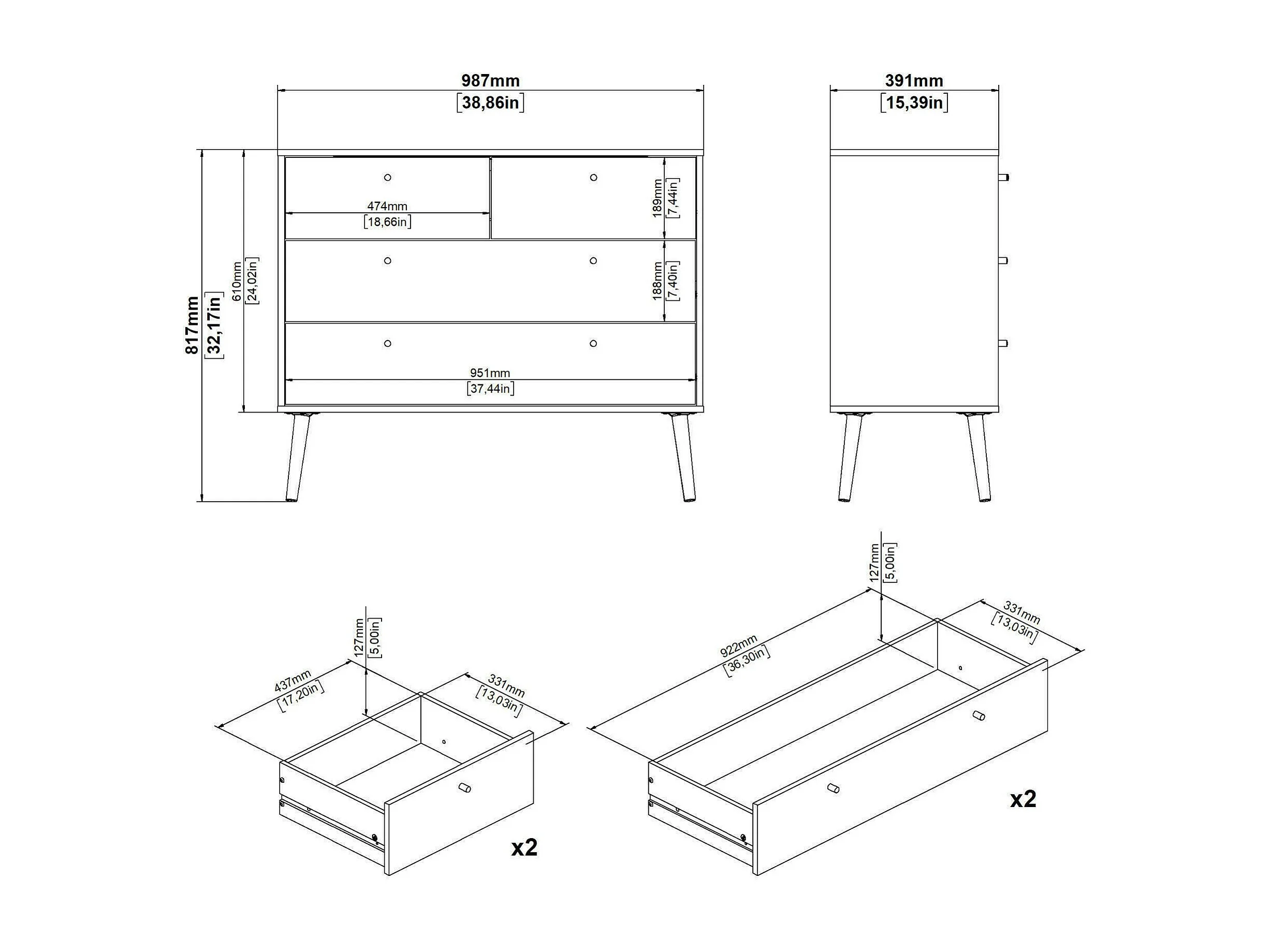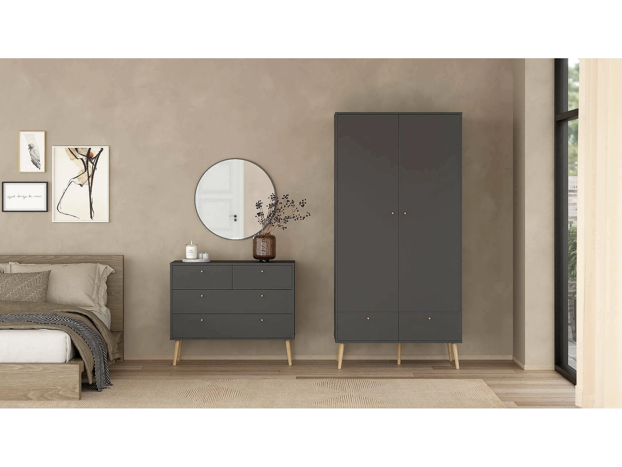 Kommode Dromol, Mehrzweckkommode, Schlafzimmerkommode, Schrank mit Schubladen, 99x39 h82 cm, Grau