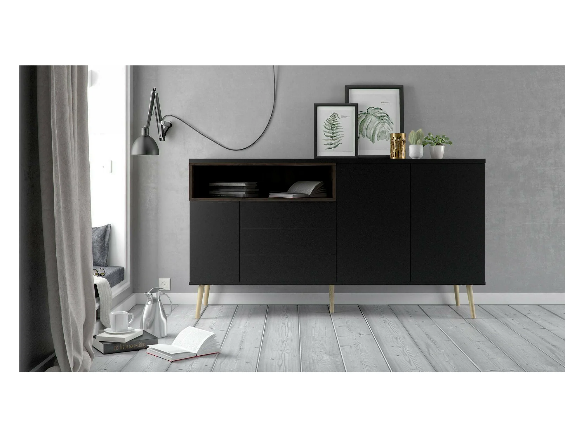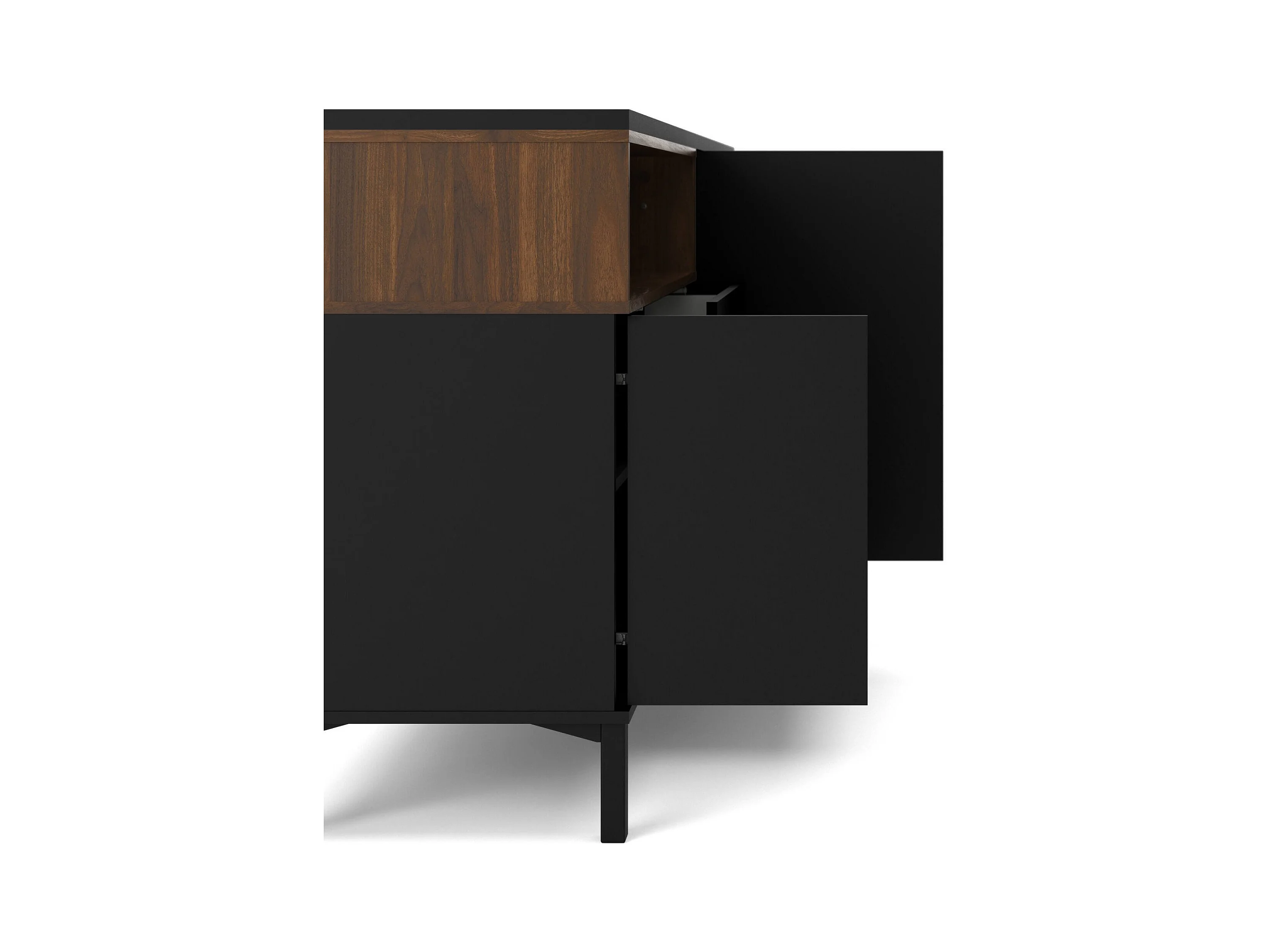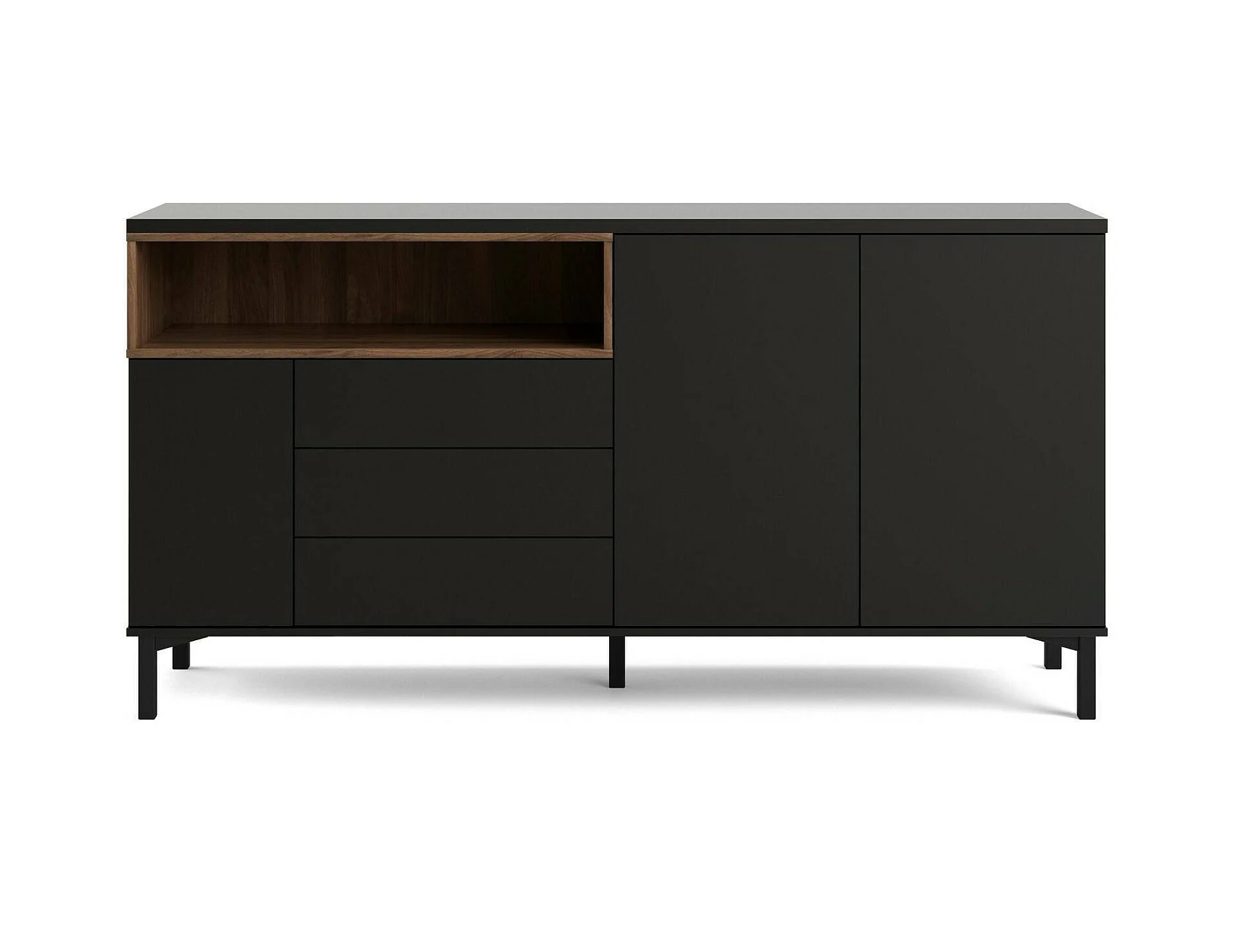 Kommode Dsardin, Wohnzimmerbuffet, Wohnzimmer-Sideboard, Moderne Küchen-Speisekammer, 176x48 h90 cm, Schwarz und Walnuss