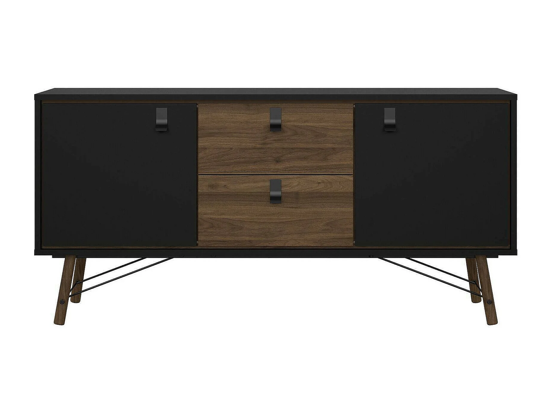 Kommode Dsavold, Wohnzimmerbuffet, Wohnzimmer-Sideboard, Moderne Küchen-Speisekammer, 150x40 h72 cm, Schwarz und Walnuss