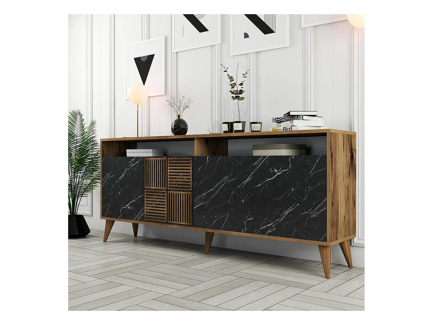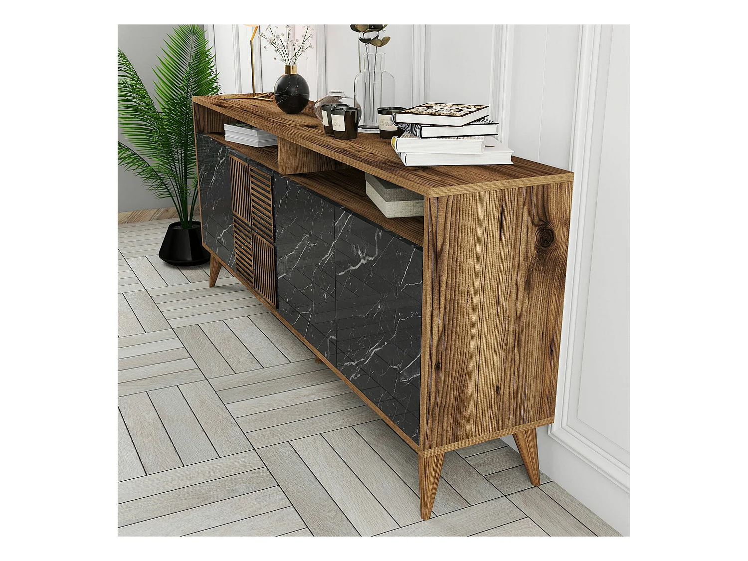 Kommode Dstenmar, Wohnzimmerbuffet, Wohnzimmer-Sideboard, Moderne Küchen-Speisekammer, 180x35 h79 cm, Walnuss und Schwarz