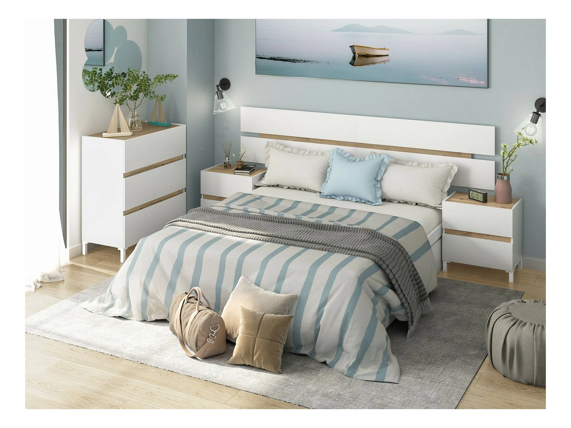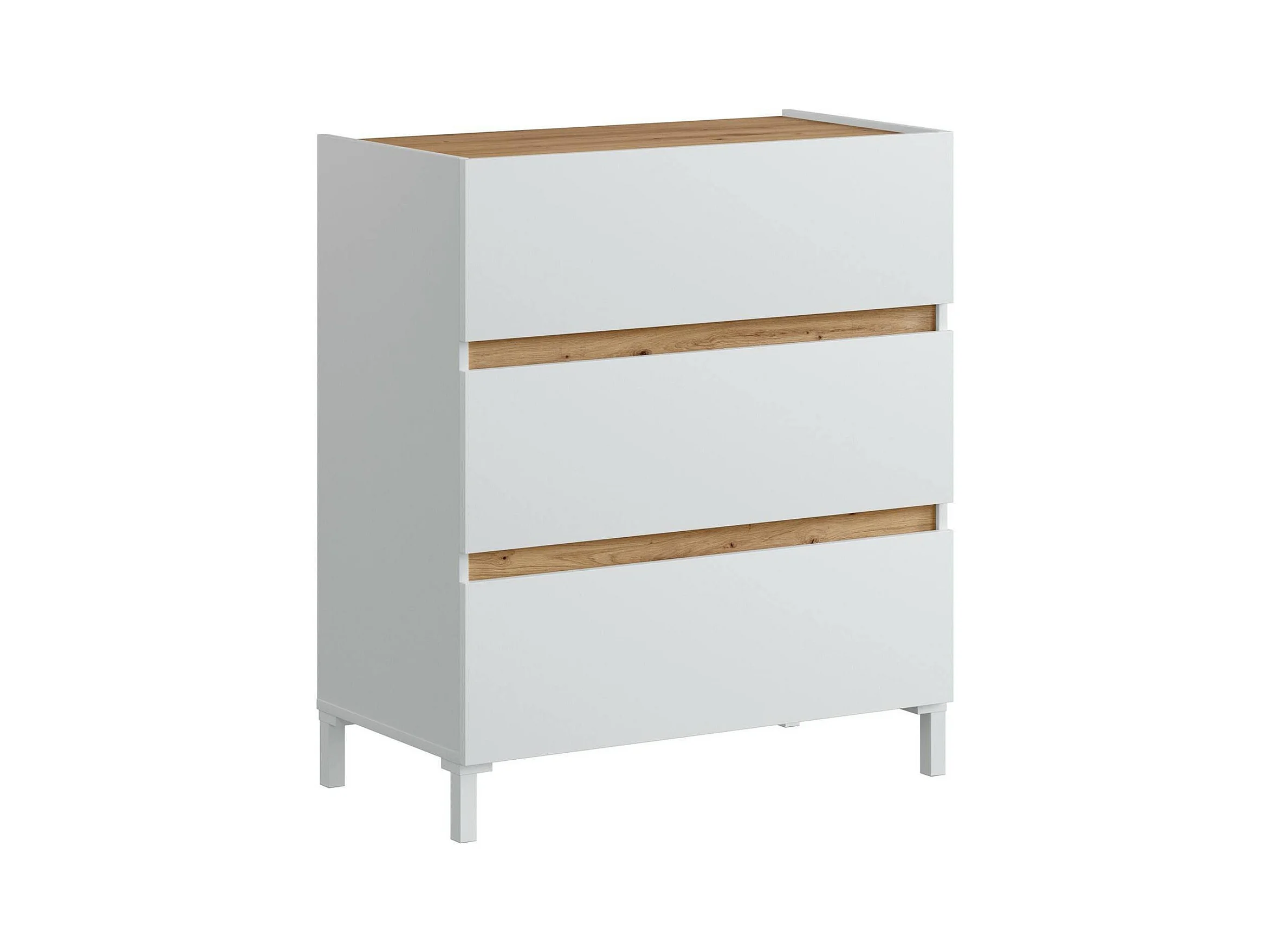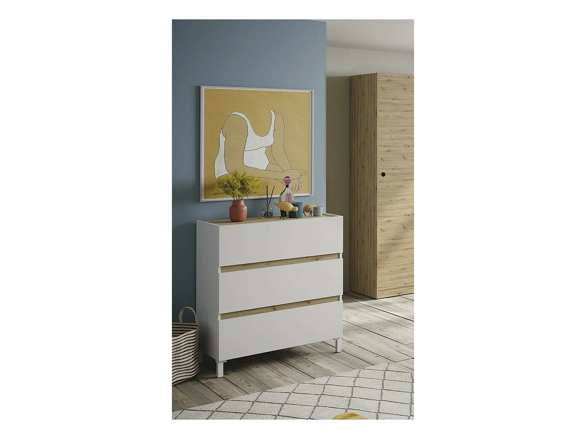 Kommode Dzenon, Mehrzweckkommode, Schlafzimmerkommode, Schrank mit Schubladen, 79x41 h91 cm, Weiß und Knoteneiche